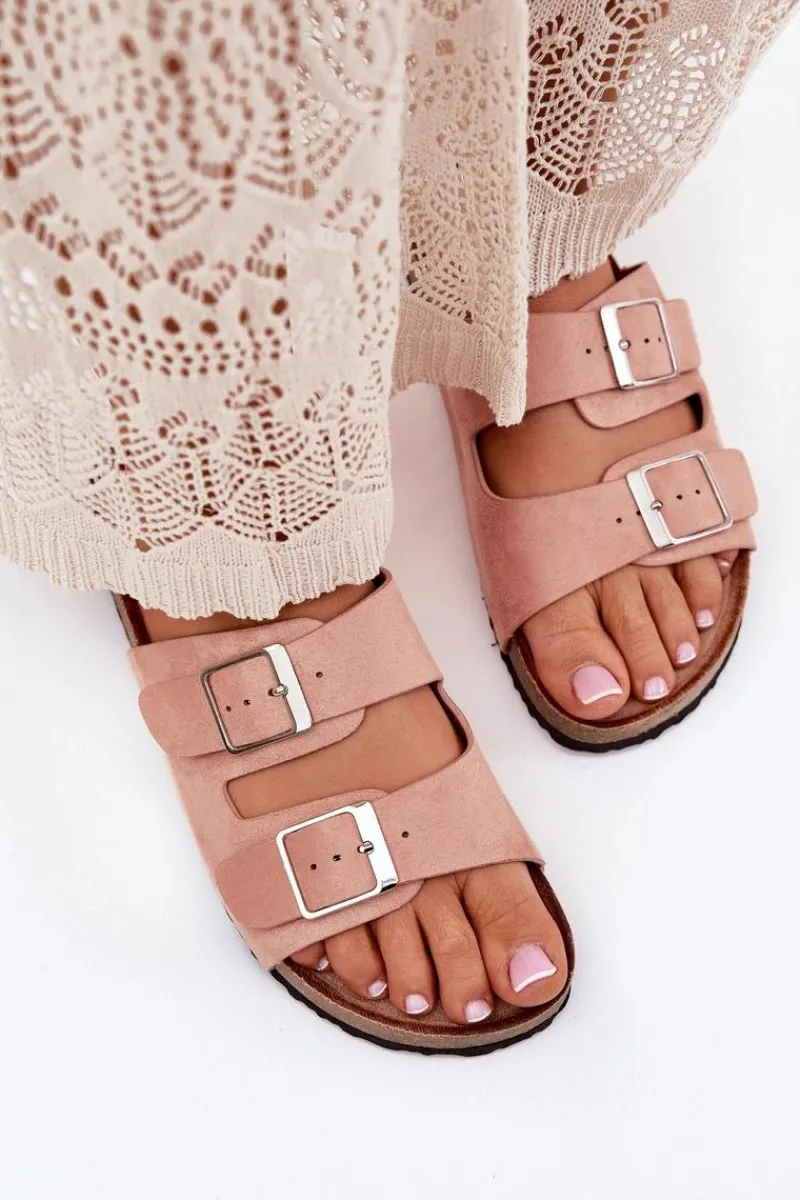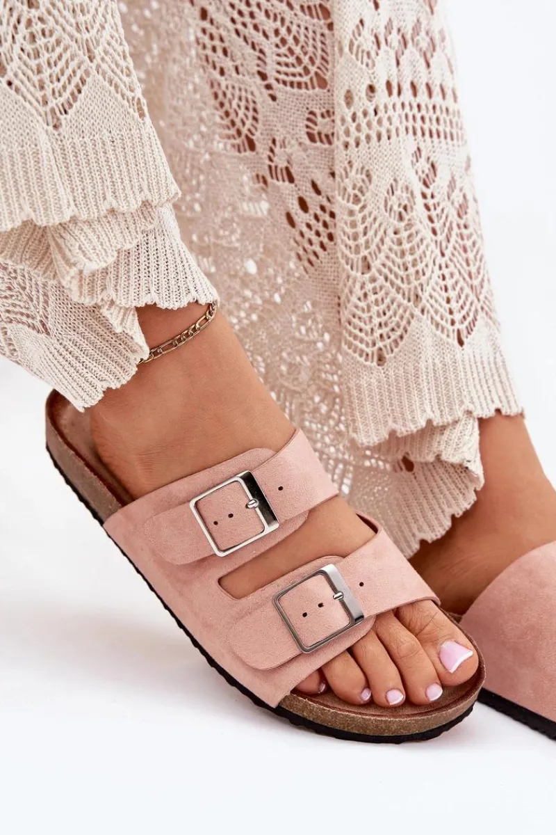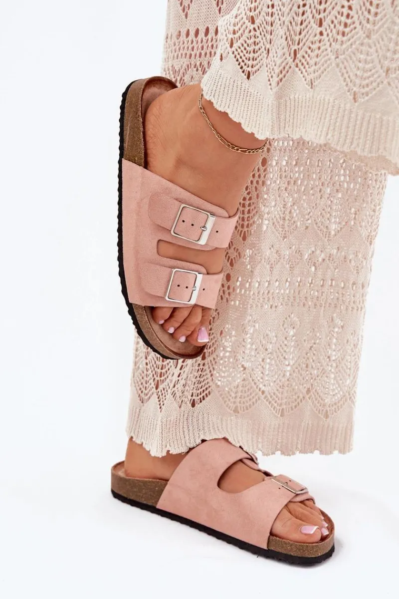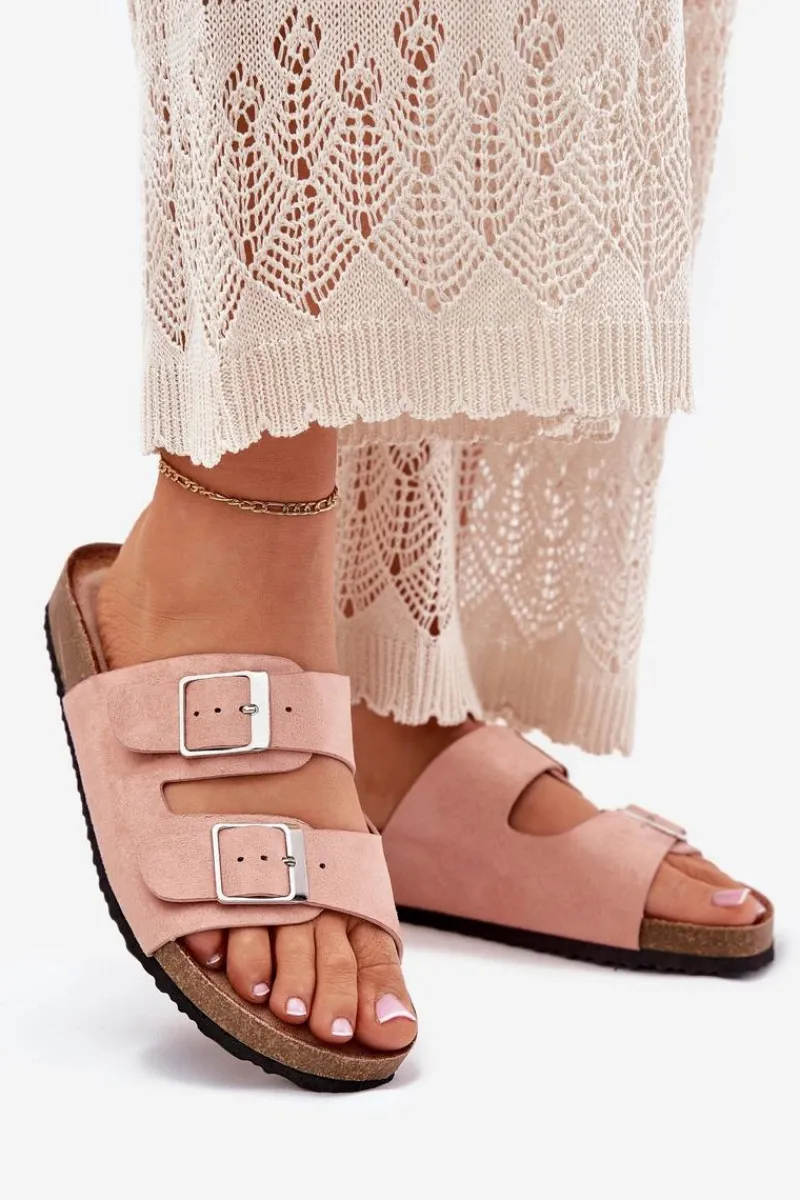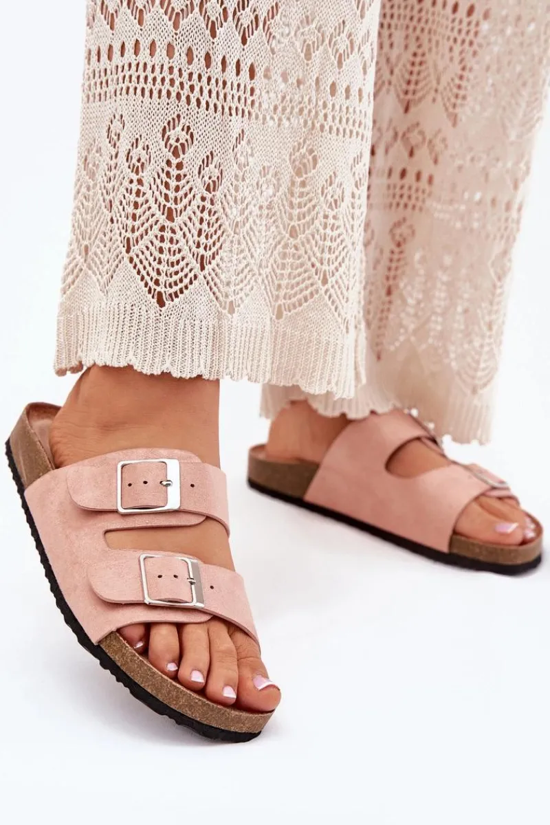 Best Klapki Damskie Na Korkowej Platformie Klamry Różowe Evisolla Damskie Klapki Korkowe|Klapki Na Platformie