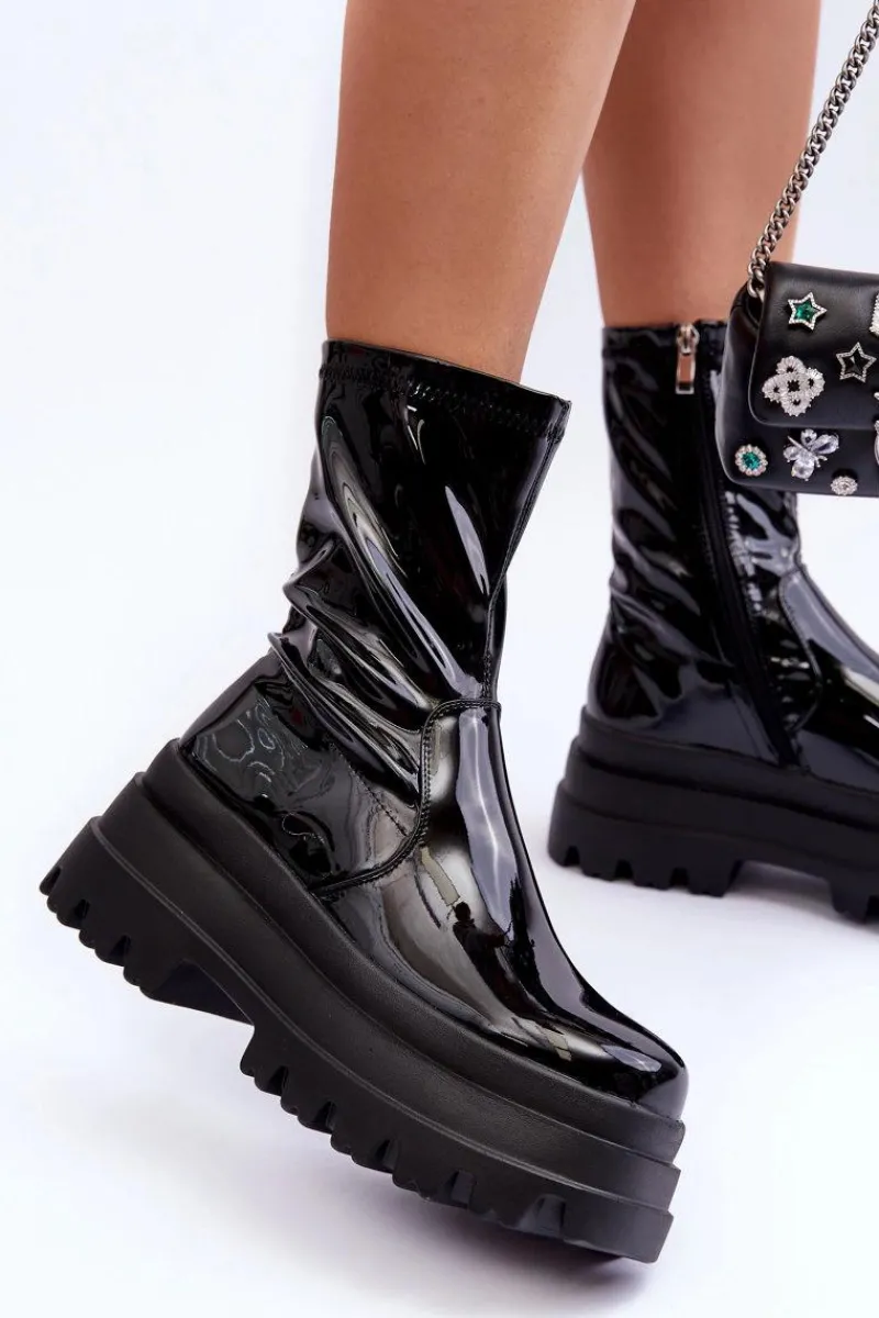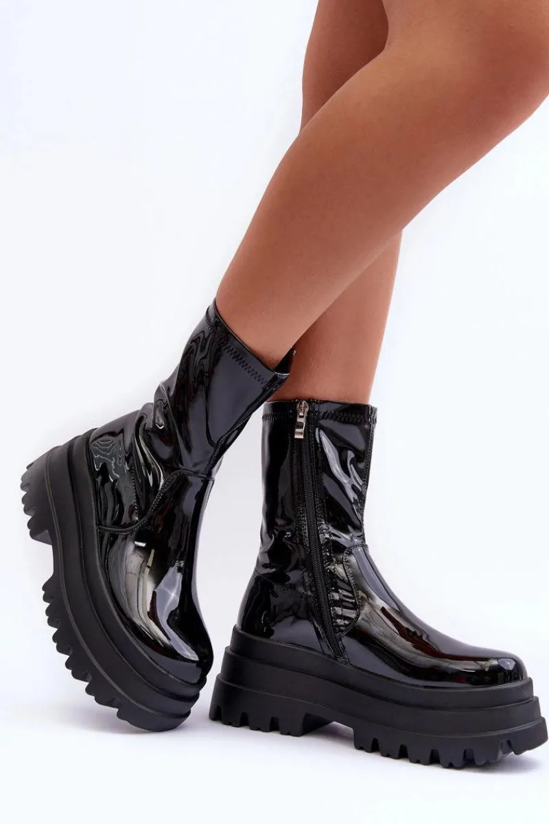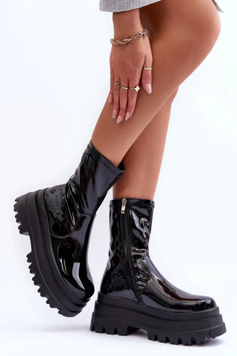 Modne botki damskie zostały wykonane z eko skóry. Zapinane na suwak po wewnętrznej stronie cholewki. Osadzone na masywnej platformie i płaskim obcasie. Koniecznie sprawdź całą naszą ofertę damskich botków. Przy wyborze rozmiaru prosimy sugerować się tabelą rozmiarów.