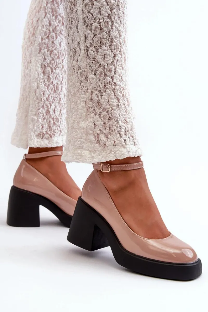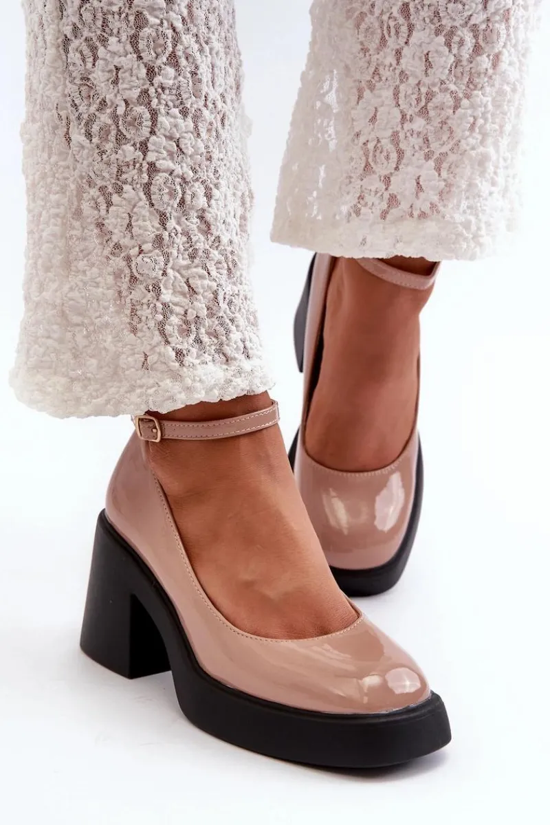Wyjątkowe czółenka wykonane ze skóry ekologicznej. Zapinane na regulowany pasek ze sprzączką, co zapewnia idealne dopasowanie do stopy. Osadzone na masywnym, wyższym obcasie w postaci klocka. Zapiętek jest usztywniany, a nosek kwadratowy. Dodatkowo buty posiadają delikatną platformę. Przy wyborze rozmiaru prosimy sugerować się tabelą rozmiarów.