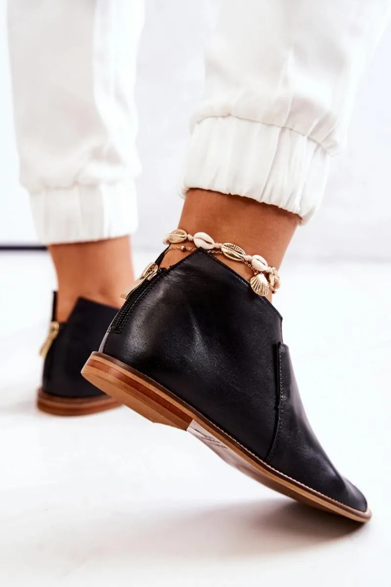 Eleganckie botki dodadzą Twoim stylizacjom klasy i szyku. Wycięty nosek oraz zapinanie na pięcie. Stylowy design. Buty na zewnątrz oraz w środku są wykonane z naturalnej skóry. Nie przegap okazji! Pora na nowe buty! Przy wyborze rozmiaru prosimy sugerować się tabelą rozmiarów.