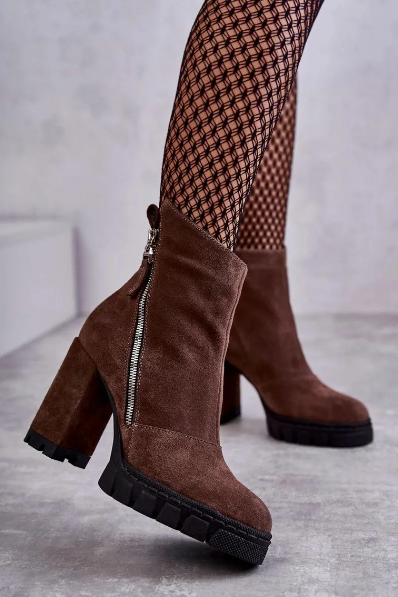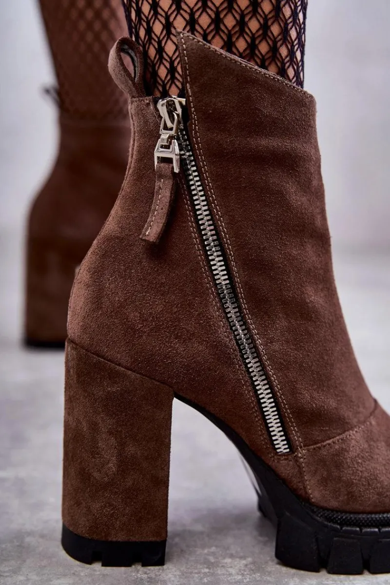 Niezwykłe botki damskie od marki Laura Messi skradną Twoje serce! Model wykonany z naturalnego zamszu. Posiada suwak ułatwiający zakładanie obuwia. Model ocieplany kocem obuwniczym. Usztywniany zapiętek. Botki osadzone na antypoślizgowej platformie i słupku. Nieregularne zakończenie cholewki wyróżnia ten model. Koniecznie powinnaś je mieć! Przy wyborze rozmiaru prosimy sugerować się tabelą rozmiarów.