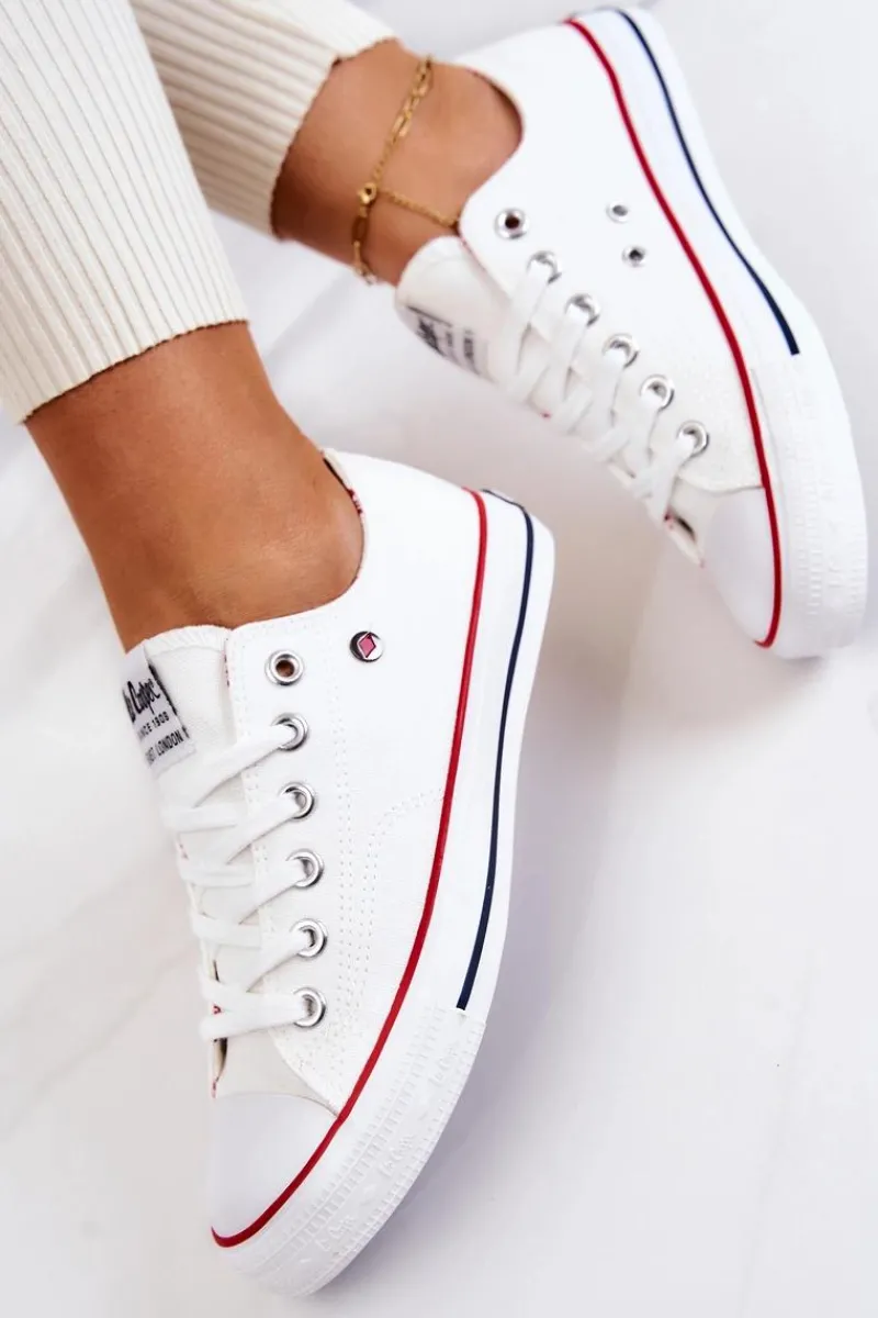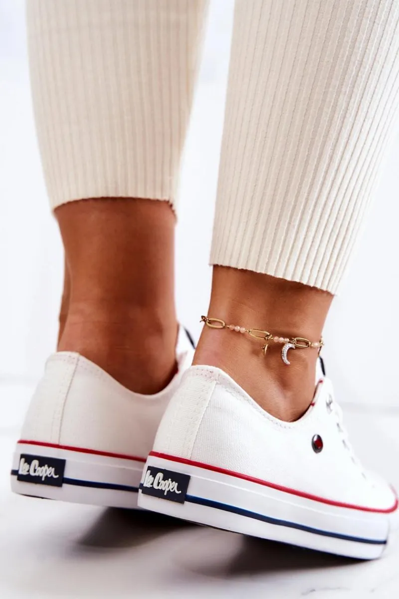 Damskie trampki marki Lee Cooper. Klasyczny model świetnie będzie komponował się z jeansami, ale także ze zwiewnymi sukienkami. Buty posiadają miękką, materiałową wkładkę oraz antypoślizgową podeszwę. Model wiązany. Nosek wzmocniony gumowym tworzywem. Koniecznie sprawdź całą naszą kolekcję butów marki Lee Cooper. Przy wyborze rozmiaru prosimy sugerować się tabelą rozmiarów.