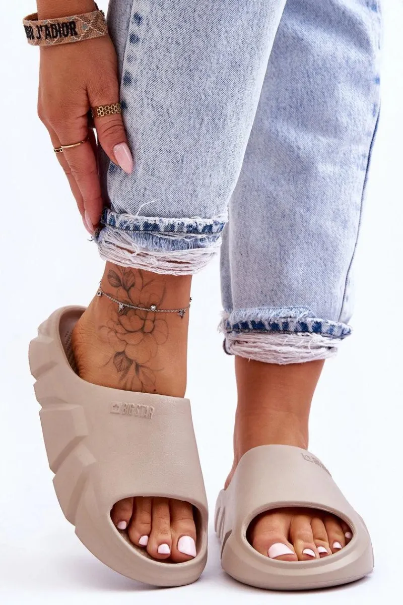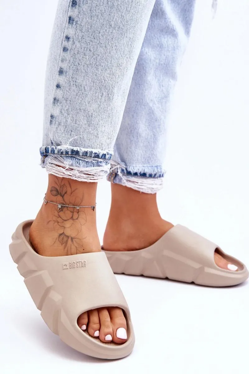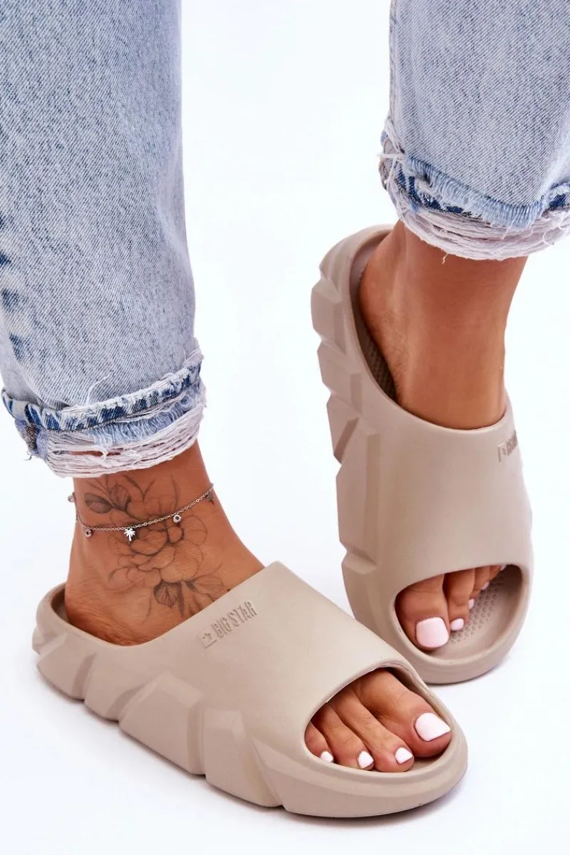 Klapki marki Big Star zostały wykonane w całości z piankowego tworzywa. Masywna platforma świetnie odizoluje od podłoża. Klapki są niezwykle komfortowe i lekkie w użytkowaniu. Na wierzchu widnieje tłoczone logo marki Big Star. Koniecznie powinnaś je mieć w swojej szafie! Przy wyborze rozmiaru prosimy sugerować się tabelą rozmiarów.