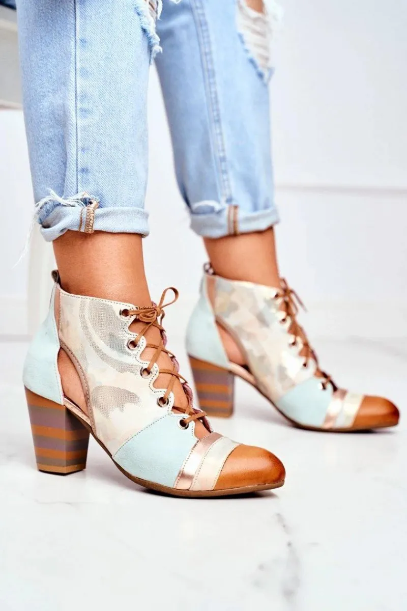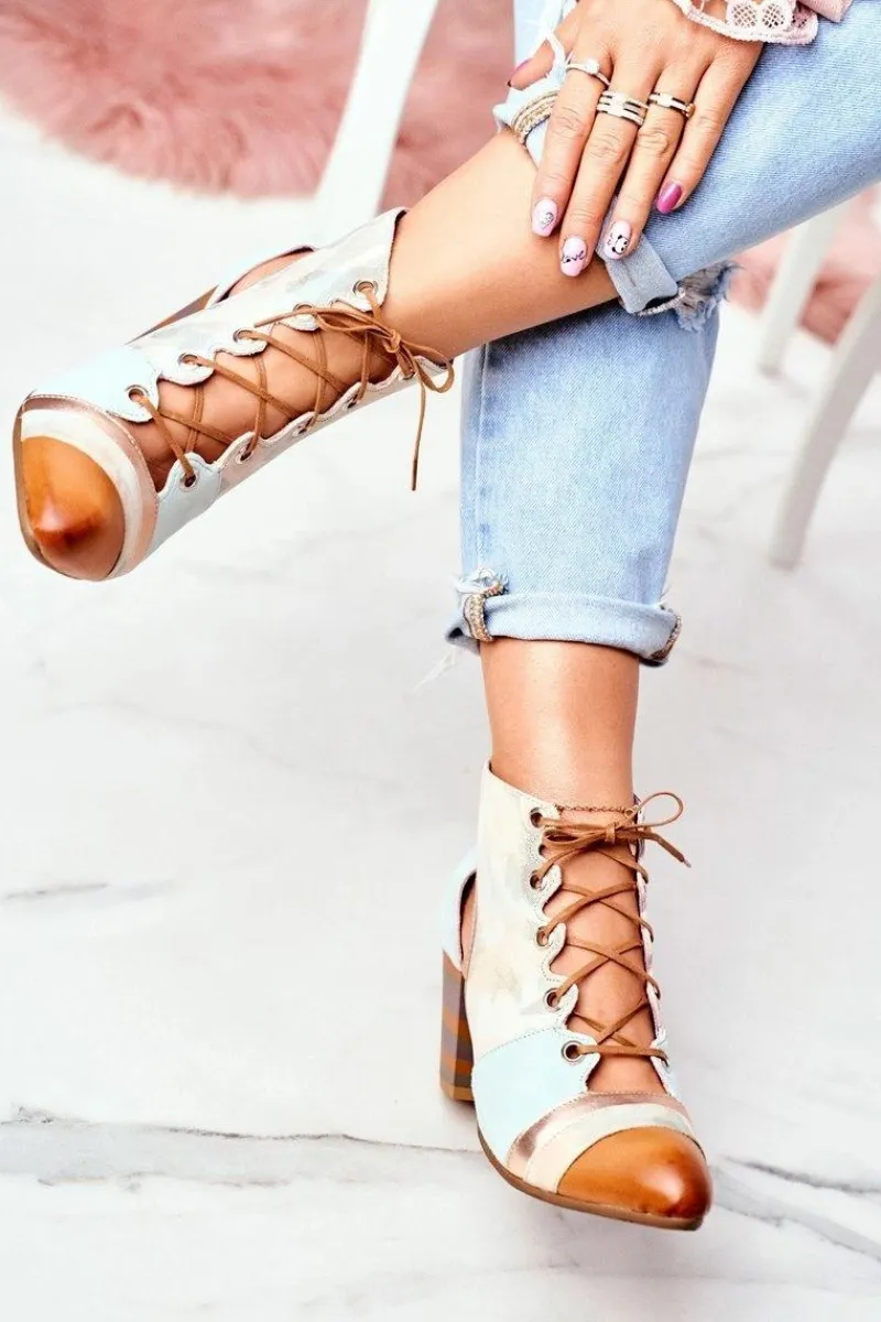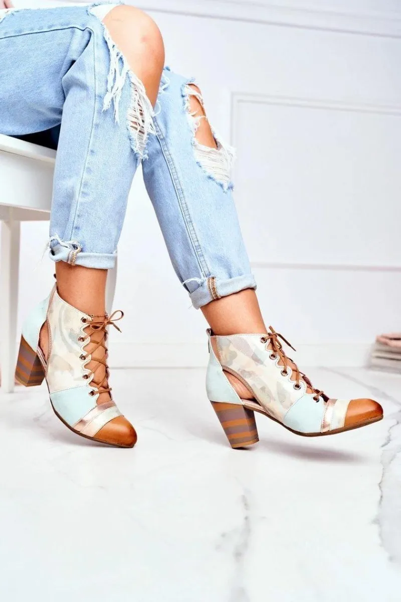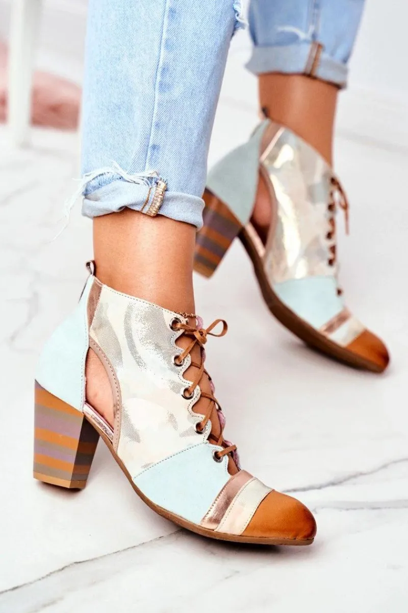 Best Maciejka Botki Damskie Na Słupku Skórzane Wiosenne 03938-04