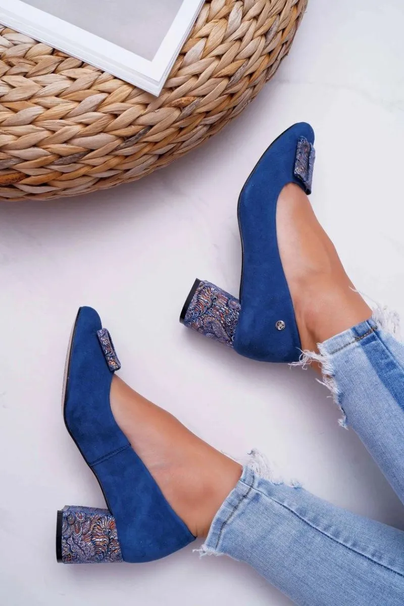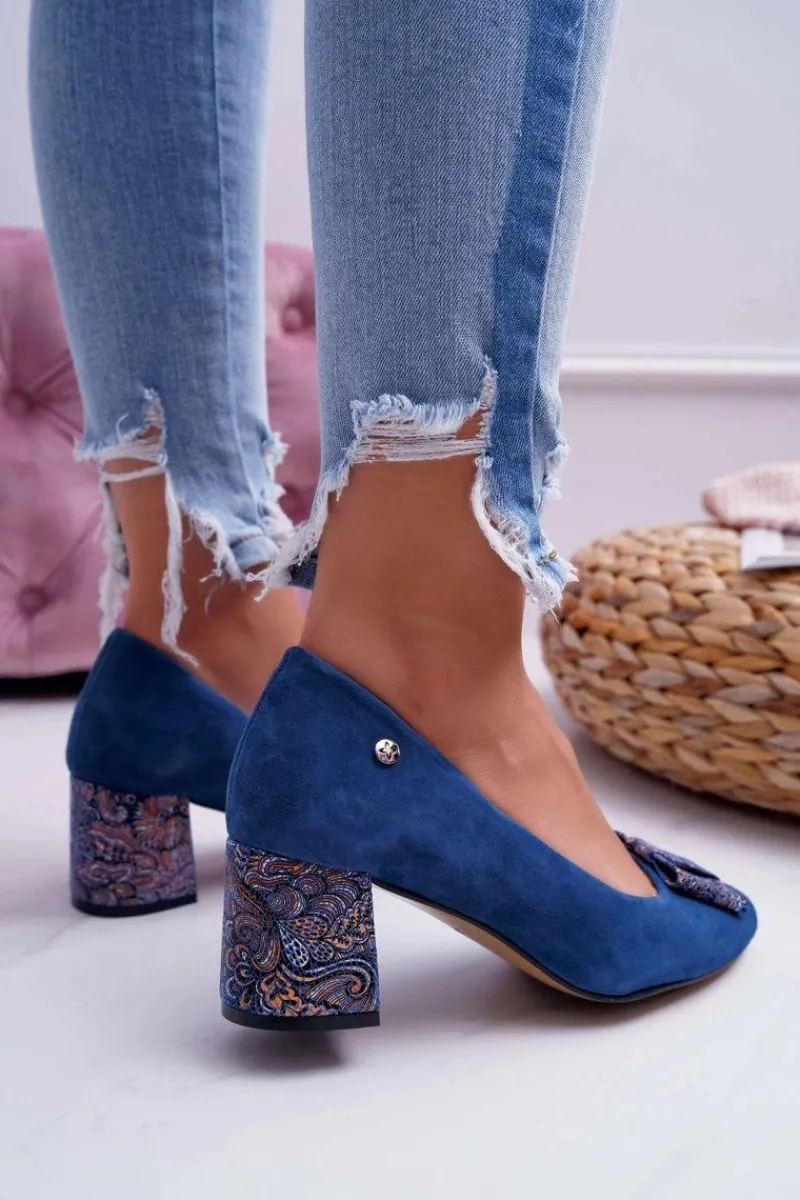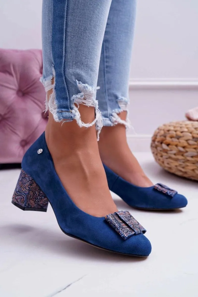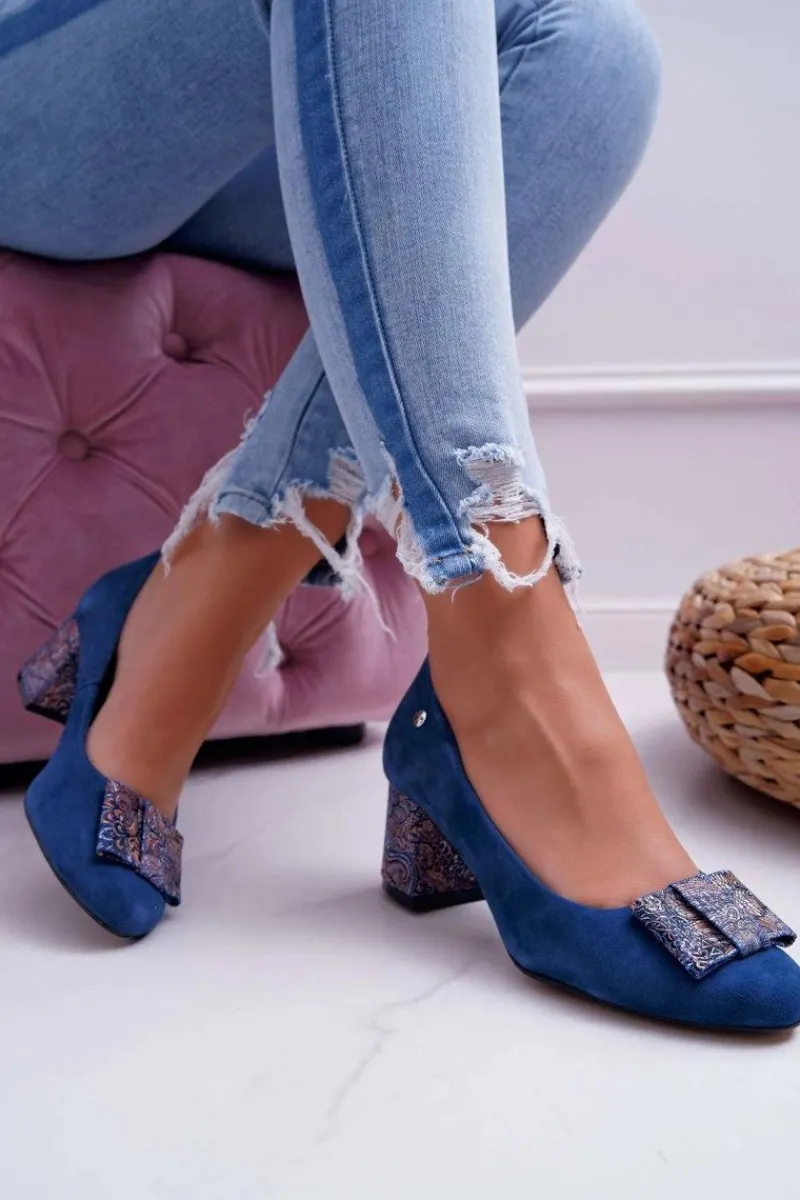Best Maciejka Czółenka Damskie Zamszowe Granatowe 3356A-17/00-1