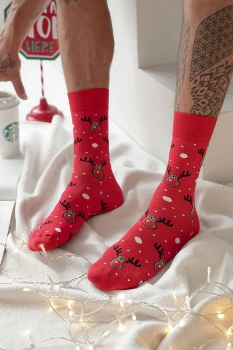 Kolorowe męskie skarpety w modnych wzorach i kolorach. Idealnie dopasowują się do stóp i zapewniają wysoki komfort noszenia.