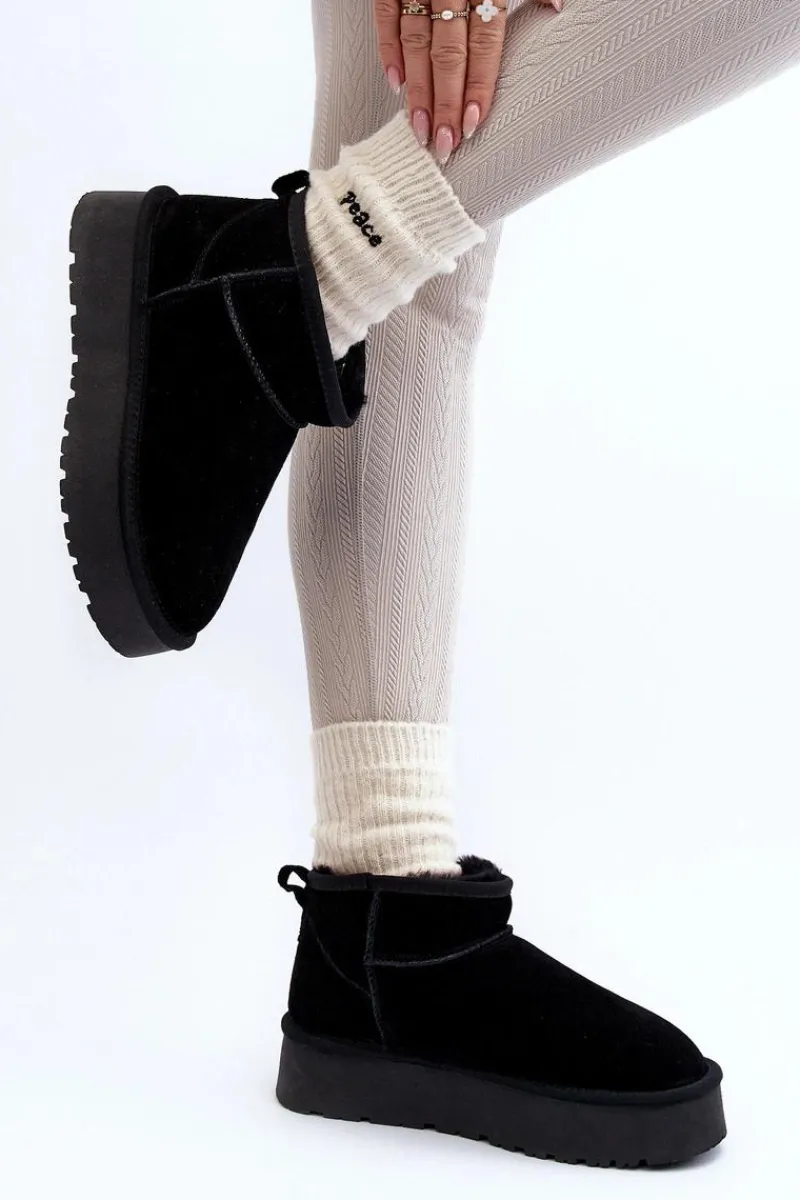 Best Modne Zamszowe Niskie Śniegowce Czarne Nucca Damskie Śniegowce Damskie