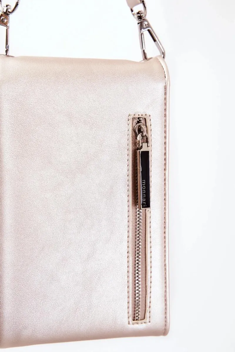 Mała torebka damska o fasonie phone bag. Posiada odpinany, regulowanym pasek z napisami Monnari. Torebka wykonana w eleganckim stylu z widocznym logo marki Monnari umieszczonym z przodu. Klapa zamykana na magnes. Z tyłu torebki znajduje się mała kieszonka zamykana na suwak. Torebka posiada dwie komory z otwartymi kieszonkami. Idealnie sprawdzi się na co dzień, gdy potrzebujemy nosić ze sobą tylko najpotrzebniejsze rzeczy. Torebka jest zapakowana w eleganckie pudełko z logo marki Monnari, dzięki czemu świetnie sprawdzi się na prezent!