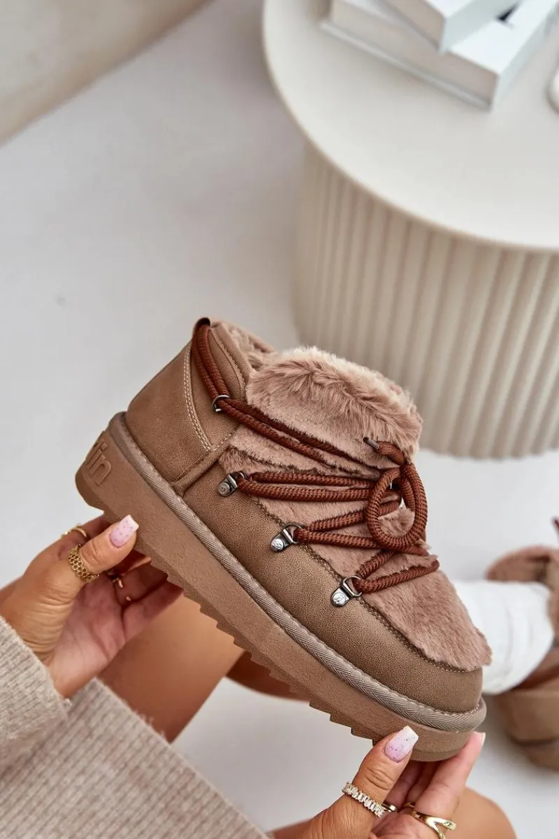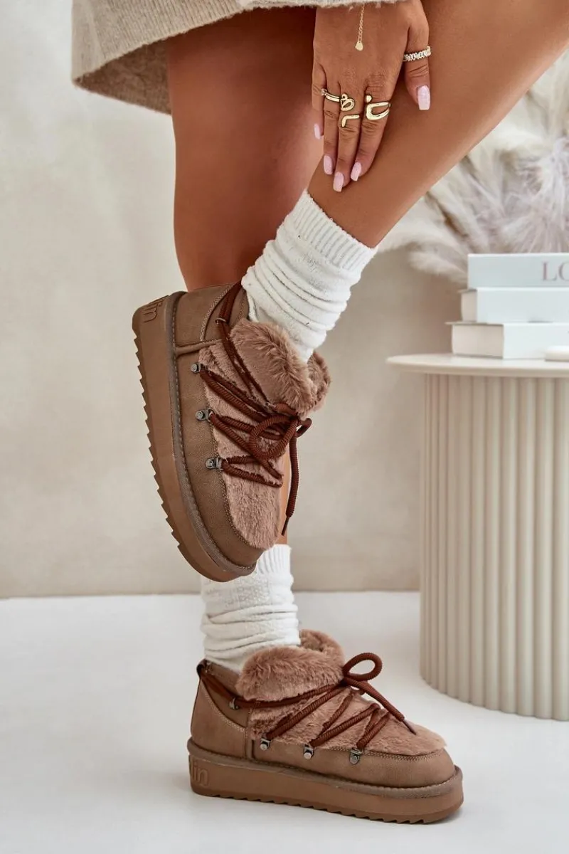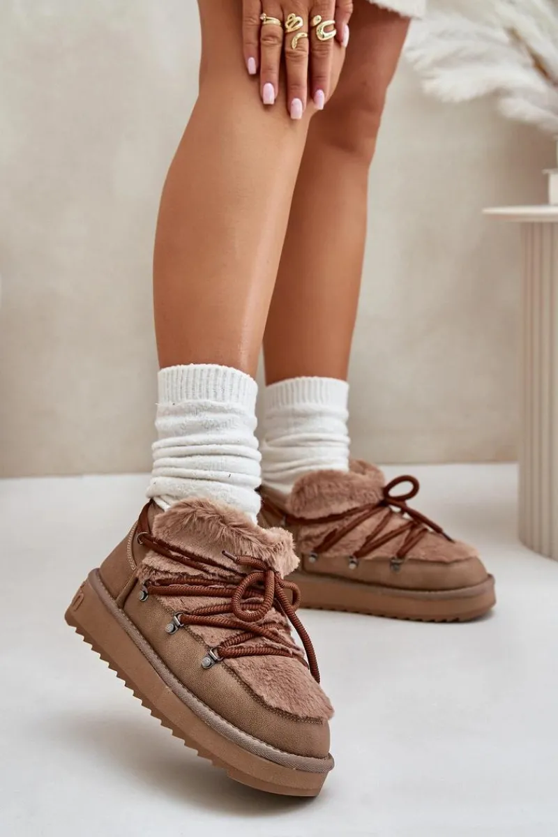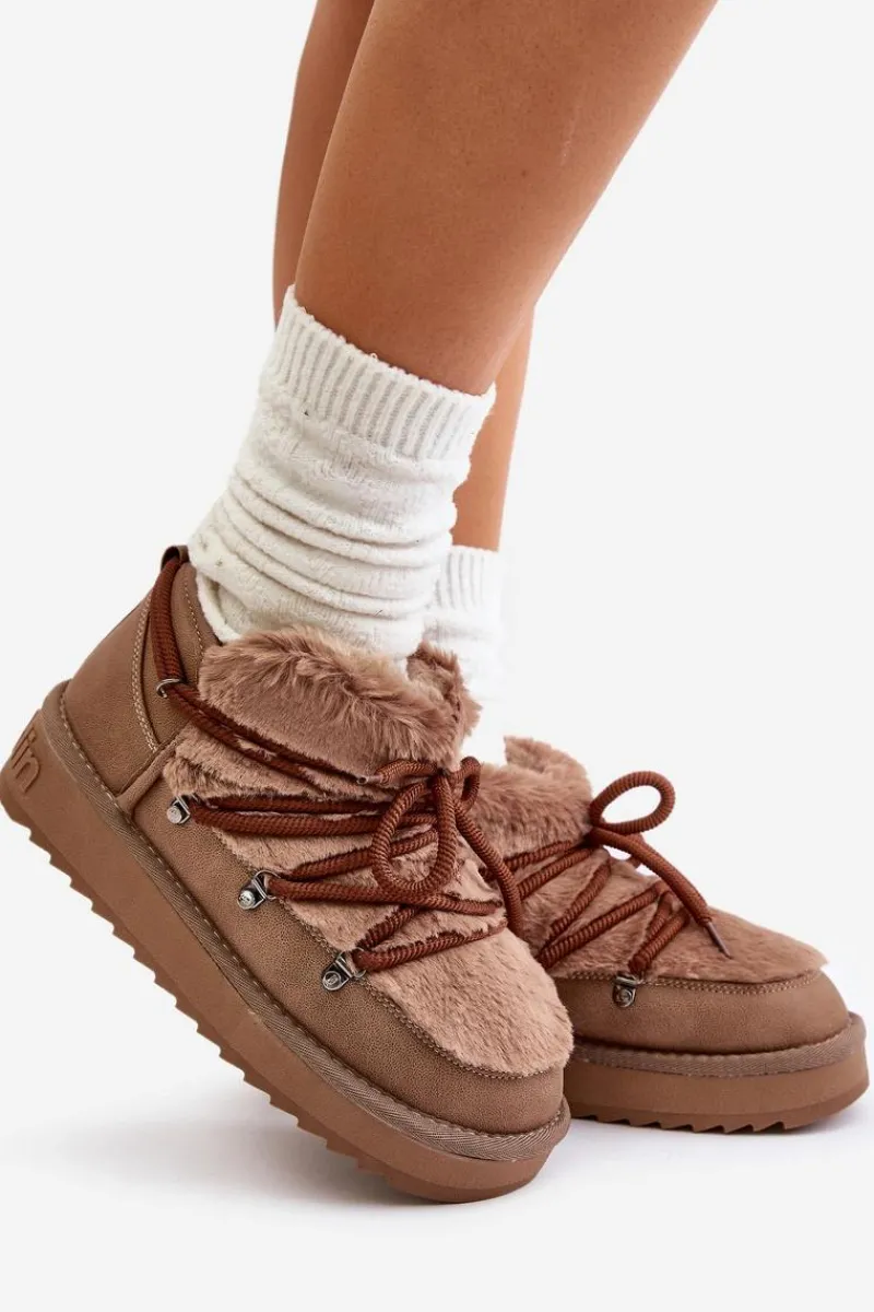 Śniegowce damskie D.Franklin wykonane z eko skóry. Osadzone na podeszwie z gumowego tworzywa. Przód ozdobiony miłym w dotyku futerkiem. Wielopozycyjne sznurowadła zapewnią doskonałe dopasowanie do stopy. Syntetyczna wyściółka w środku. Cholewka do kostki. Śliczny model, który powinnaś mieć w swojej zimowej garderobie! Przy wyborze rozmiaru prosimy sugerować się tabelą rozmiarów.
