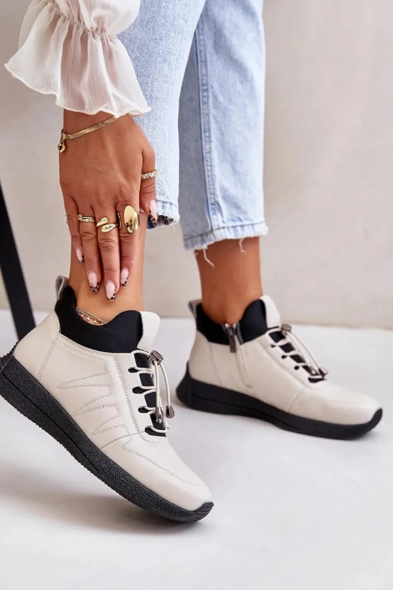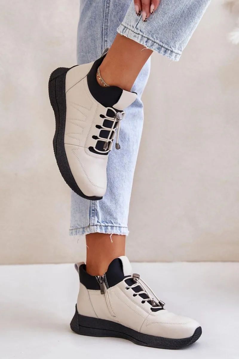 Buty Sportowe wykonane ze skóry naturalnej. Osadzone na podeszwie z gumowego tworzywa. Ocieplane w środku kocem obuwniczym, co sprawia, że będą idealnym wyborem na chłodniejsze dni. Zapinane na zamek oraz dodatkowo posiadają sznurowanie. Noski zaokrąglone. Koniecznie powinnaś je mieć! Przy wyborze rozmiaru prosimy sugerować się tabelą rozmiarów.