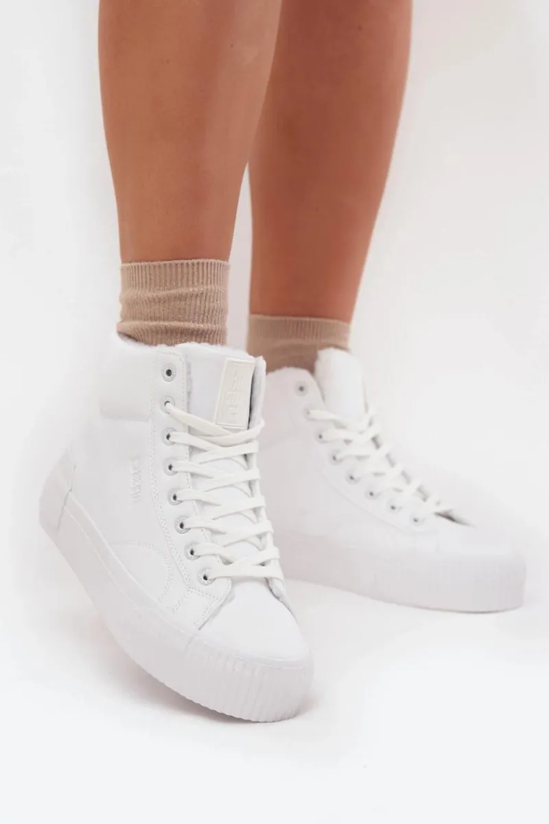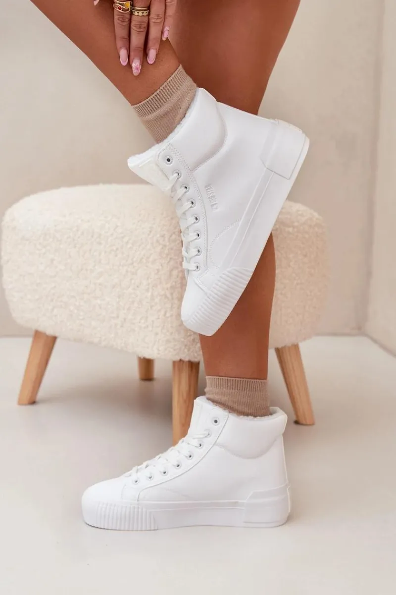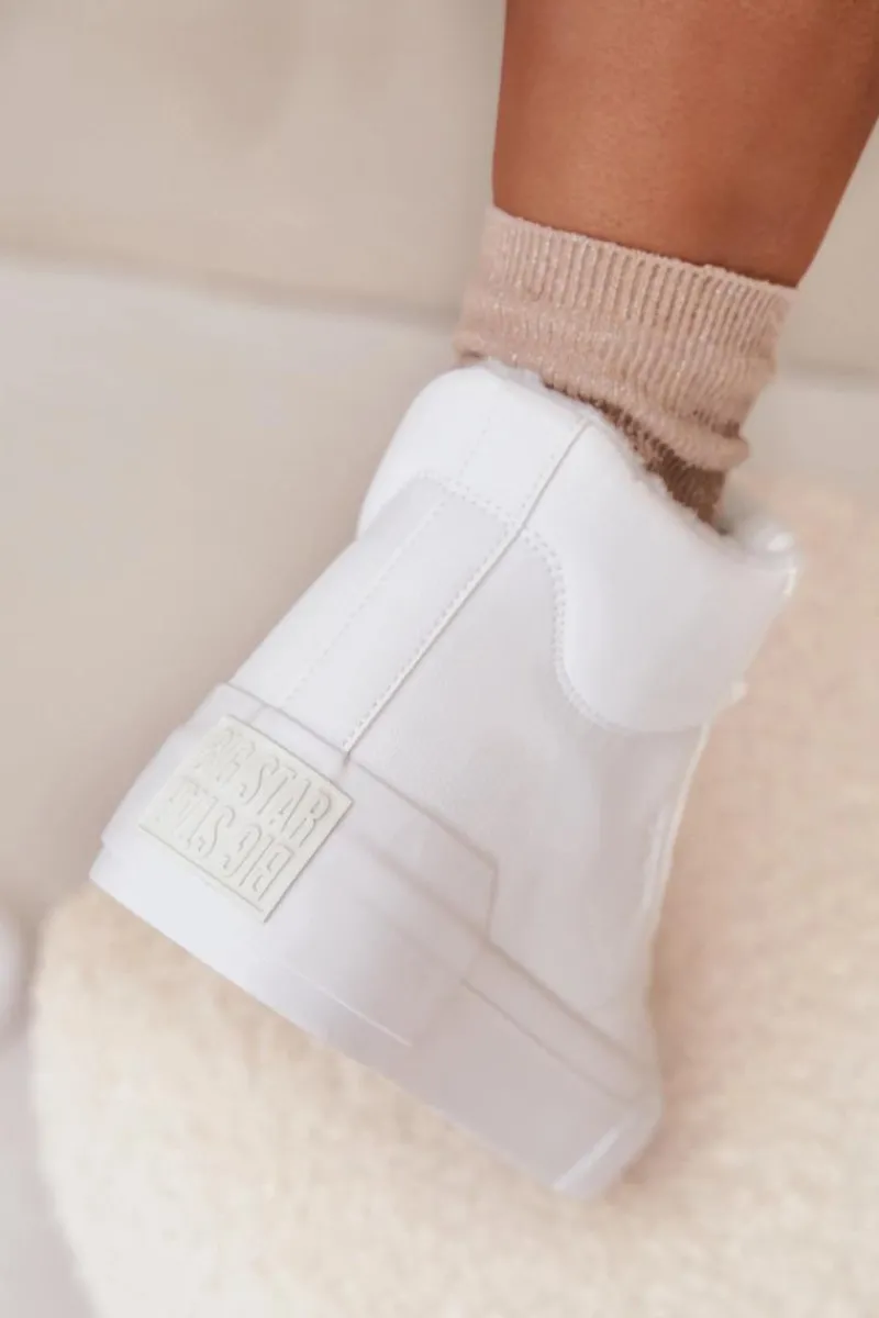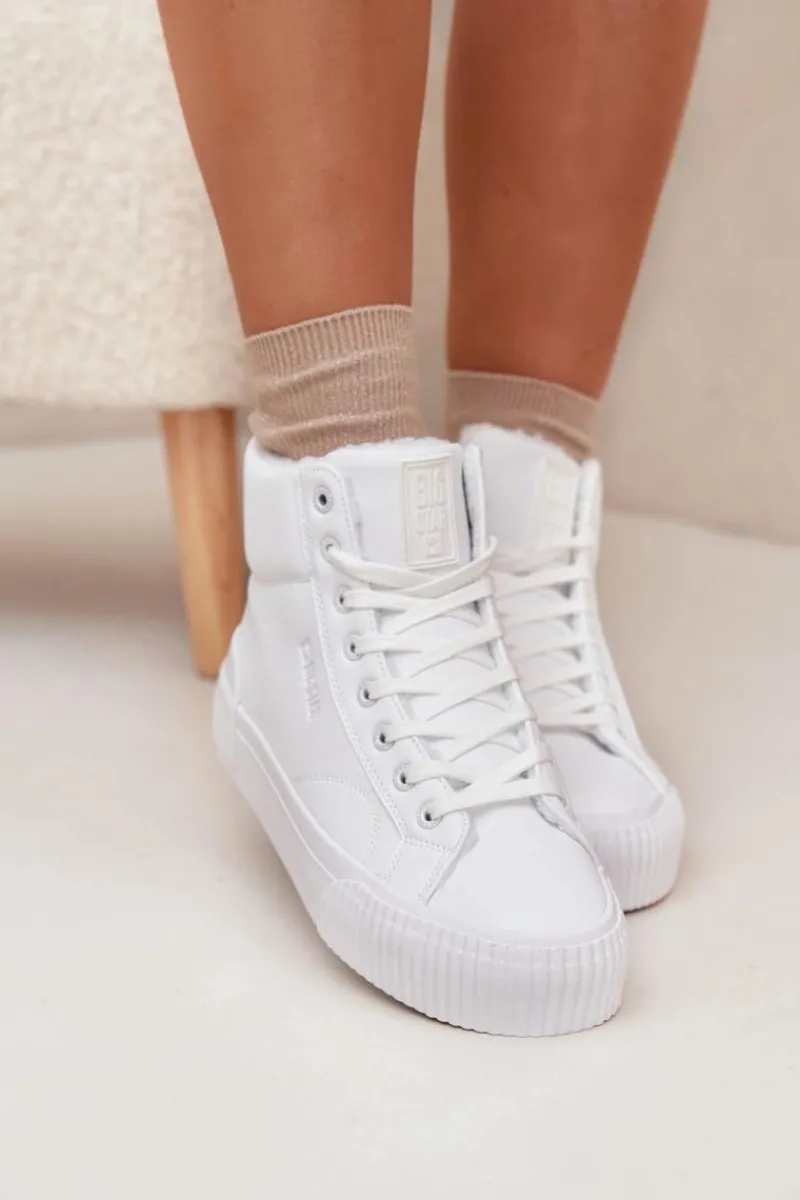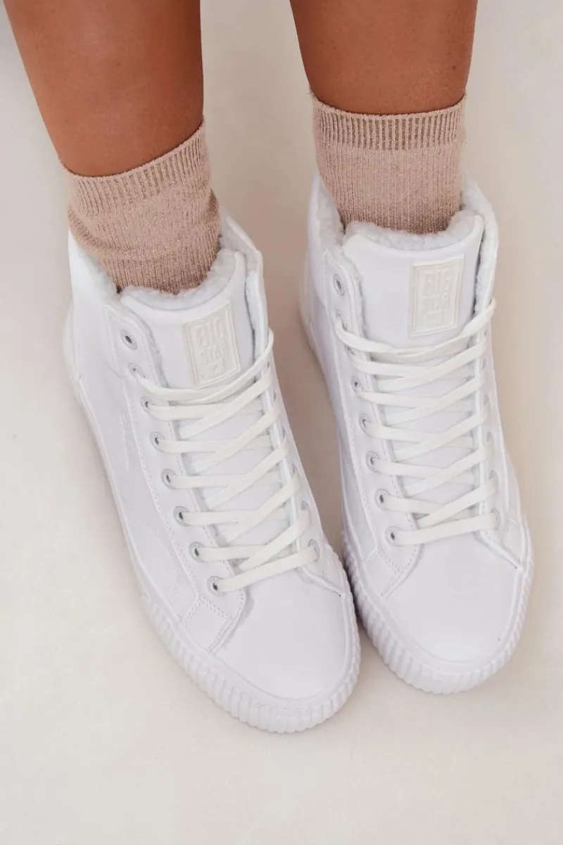 Trampki damskie od marki Big Star. Wykonane z eko skóry, osadzone na platformie z gumowego tworzywa, zapewniają wygodę i stabilność na każdym kroku. Model sznurowany pozwala na idealne dopasowanie do stopy, a ocieplenie kożuszkiem wewnątrz butów gwarantuje ciepło w chłodniejsze dni. Doskonałe na co dzień, te trampki łączą styl z funkcjonalnością, stanowiąc świetny wybór do jesiennych i zimowych stylizacji. Przy wyborze rozmiaru prosimy sugerować się tabelą rozmiarów.