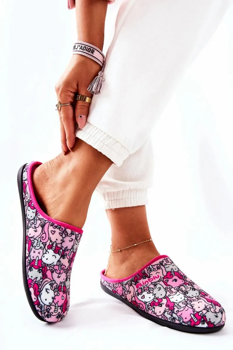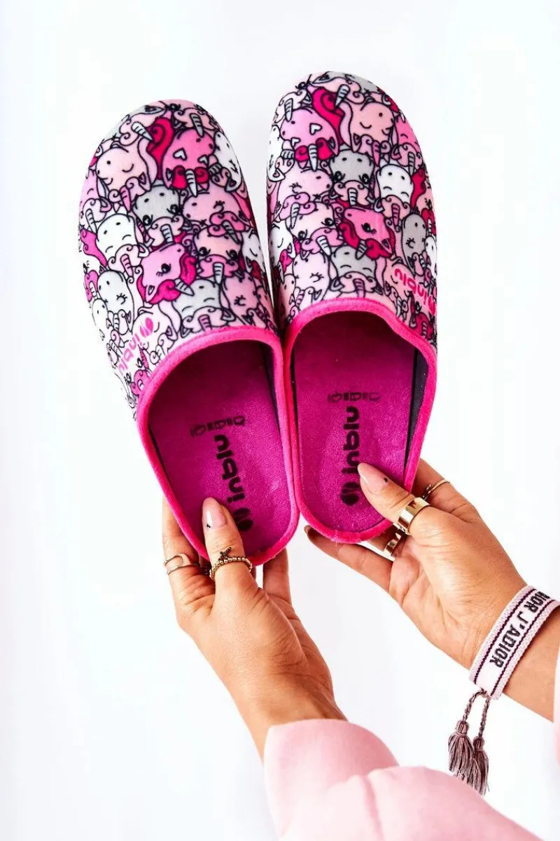 Best Papcie Klapki Jednorożce 155D201 Różowe Damskie Kapcie Klasyczne|Klapki Damskie Klasyczne