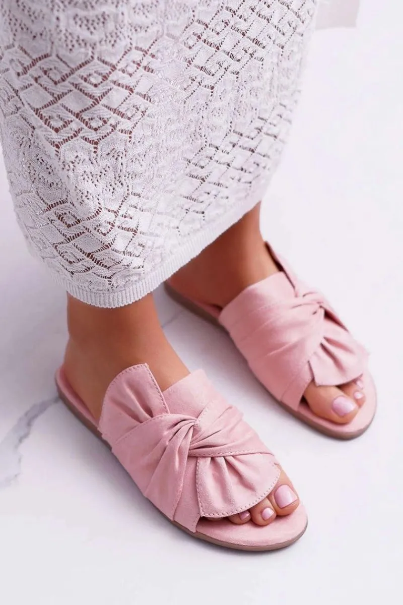 Hot Boto Klapki Z Kokardą I Ozdobnym Misiem Jasnoróżowe Suzy