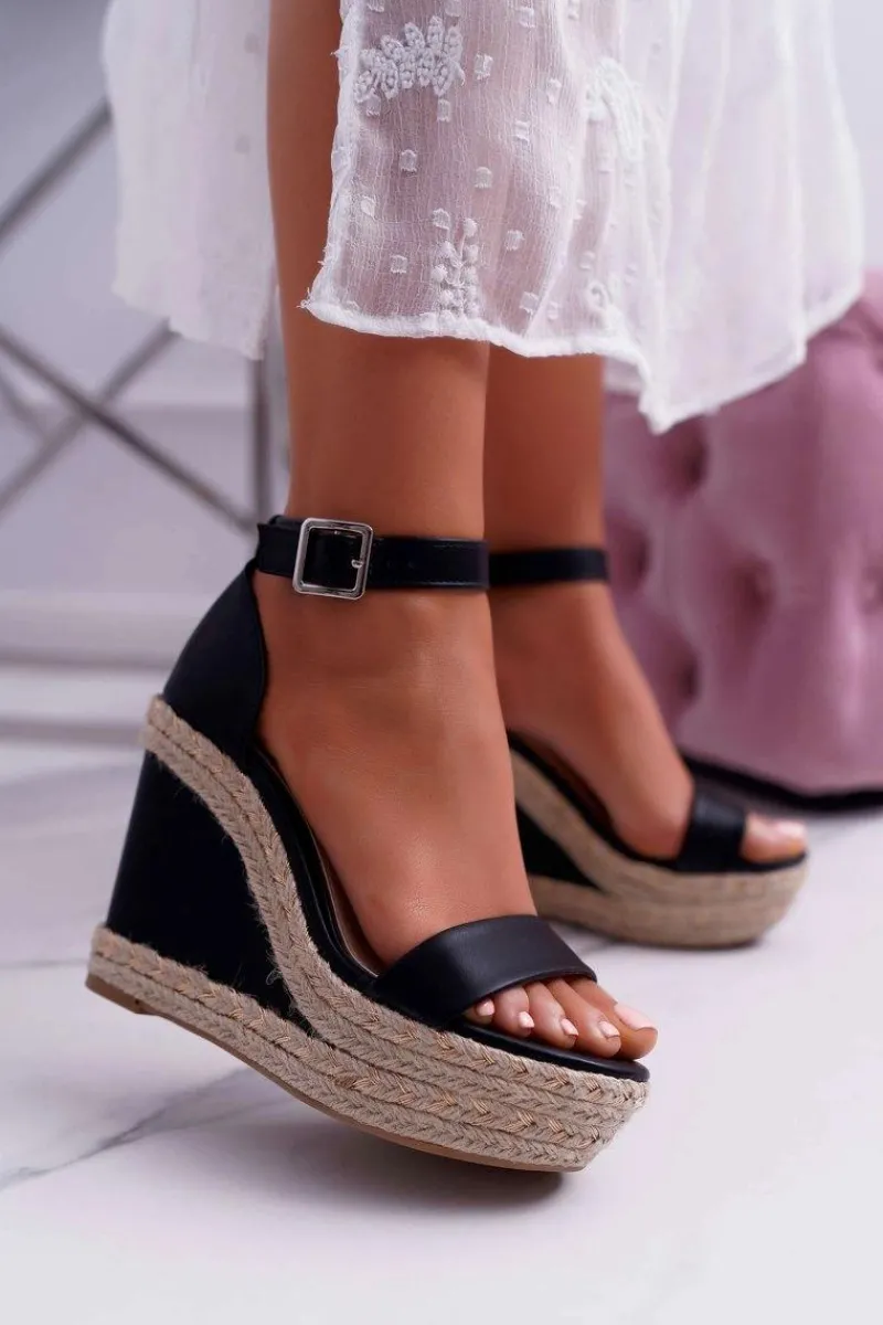 Best Sandały Damskie Na Espadryku Czarne Devon Damskie Sandały Na Koturnie
