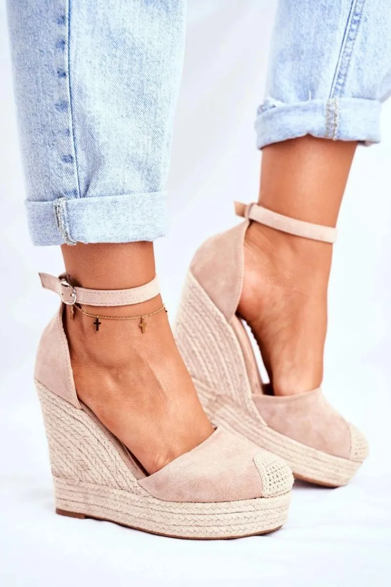 Stylowe i modne sandały na lnianej koturnie! Klasycznie zapinane na pasek ze sprzączką. Model osadzony na wygodnym koturnie, który w połączeniu z miękką wkładką zapewnia nam poczucie komfortu w każdej sytuacji. Przy wyborze rozmiaru prosimy sugerować się tabelą rozmiarów.