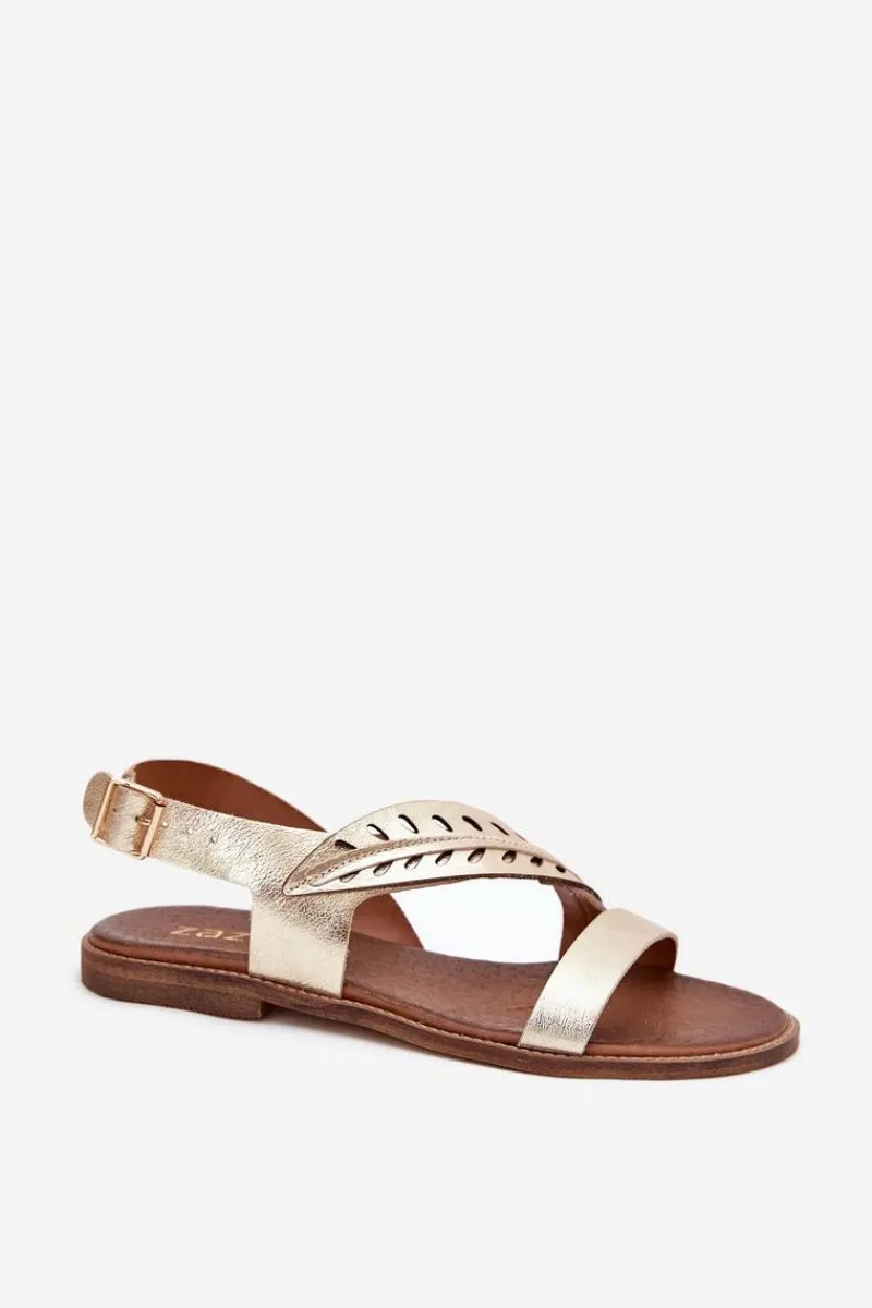 Eleganckie sandały damskie na płaskim obcasie, wykonane z wysokiej jakości naturalnej skóry, to połączenie klasyki i subtelnej elegancji. Zapinane na klamrę z regulowanym paskiem, zapewniają wygodę i idealne dopasowanie do stopy. Ozdobny listek na pasku z przodu dodaje im wyjątkowego charakteru. Doskonałe do letnich stylizacji, świetnie komponują się z sukienkami, spódnicami czy spodniami, wprowadzając do każdego looku elegancki akcent. Przy wyborze rozmiaru prosimy kierować się tabelą rozmiarów.