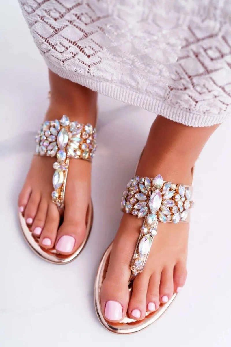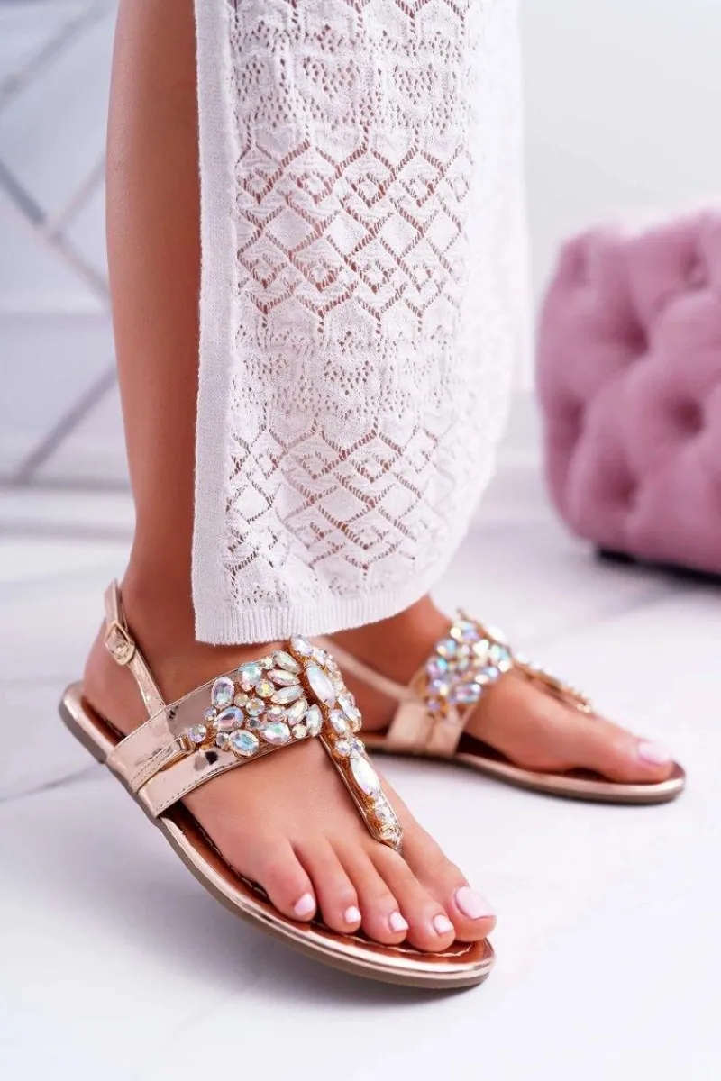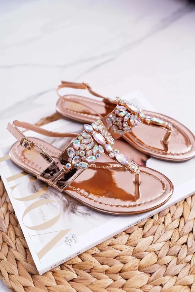 Sandały marki Lu Boo ozdobione kryształami. Sandały wykonane są z lakierowanej skóry ekologicznej. Przy wyborze rozmiaru prosimy sugerować się tabelą rozmiarów.
