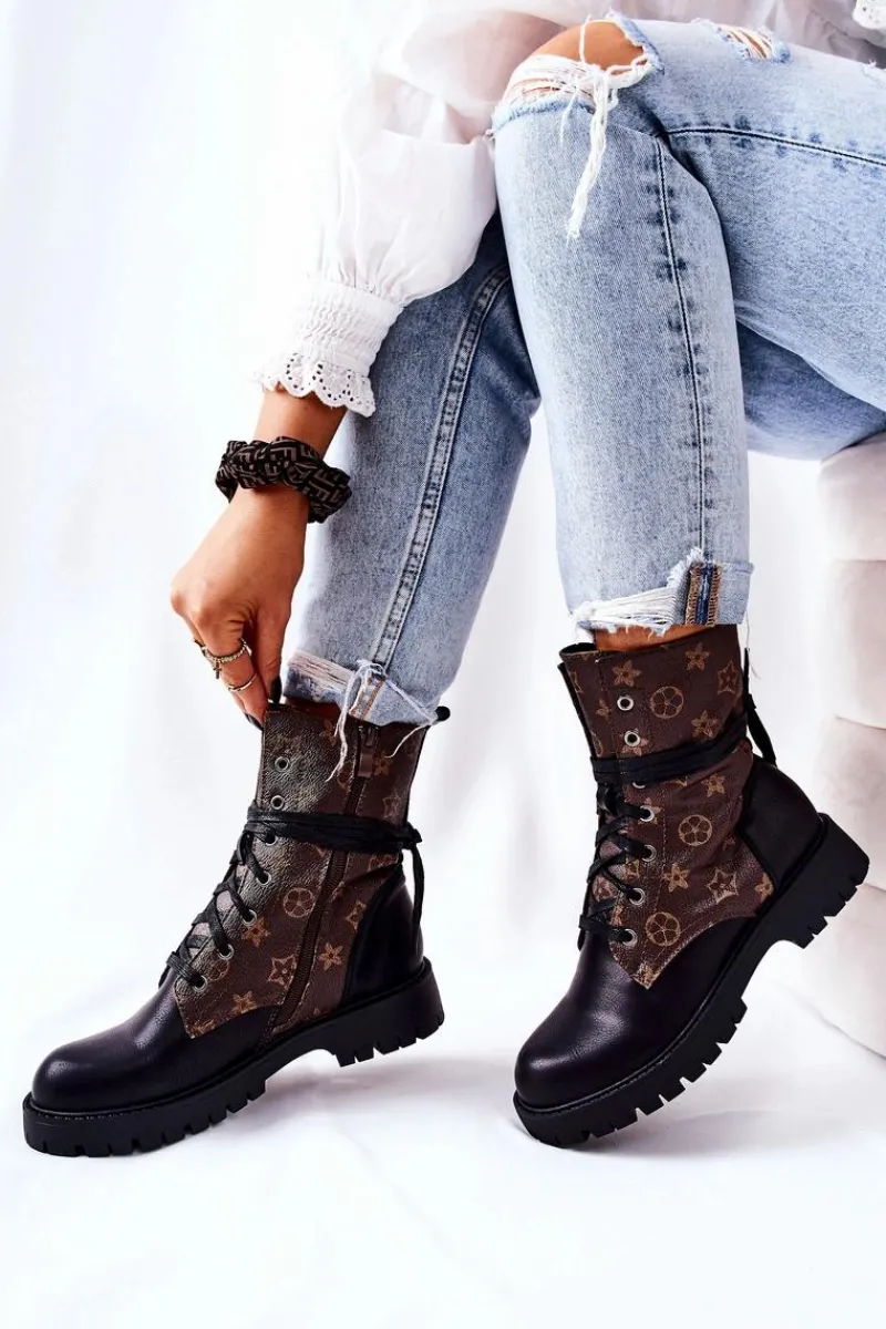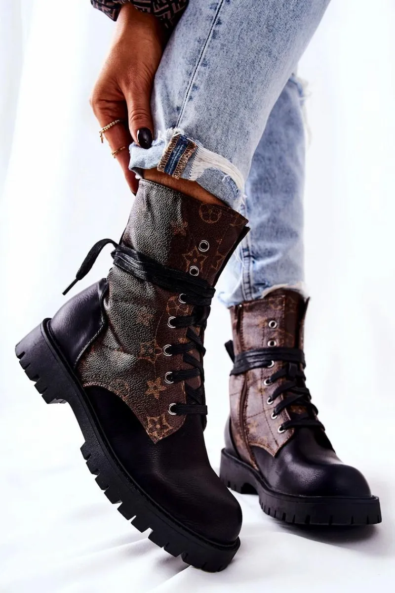Wysokie botki zostały wykonane z eko skóry. Posiadają długie sznurówki, które można zawiązać wokół cholewki. Świetny model, który doda Twoim stylizacjom charakteru! Botki posiadają także suwak ułatwiający zakładanie obuwia. W środku są ocieplane delikatnym kocem obuwniczym.
