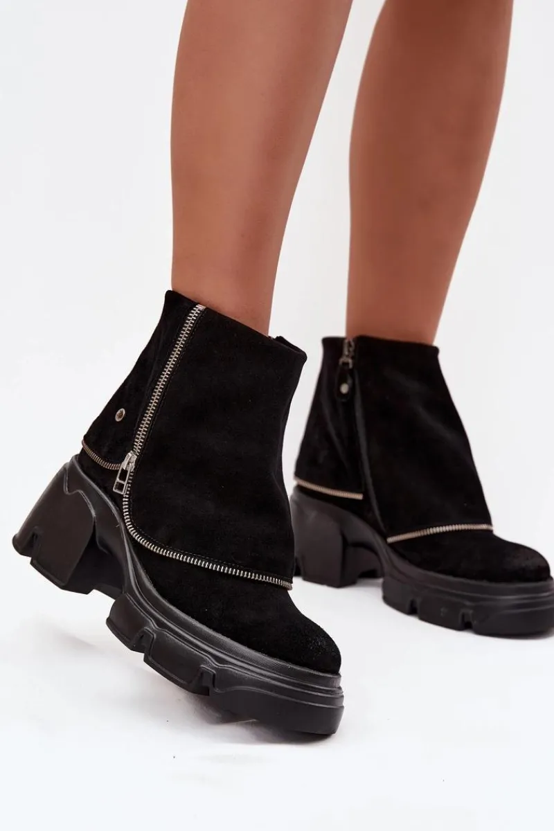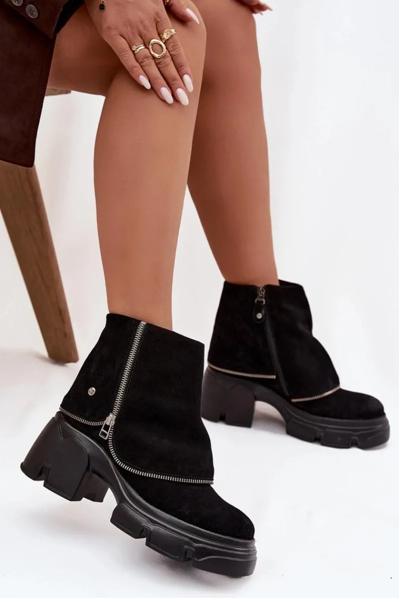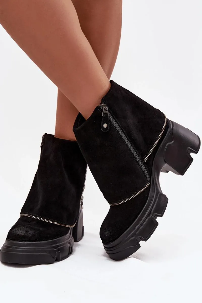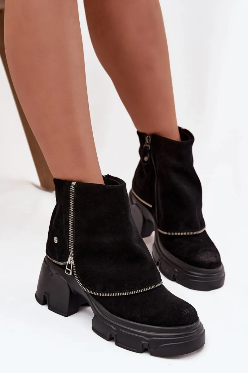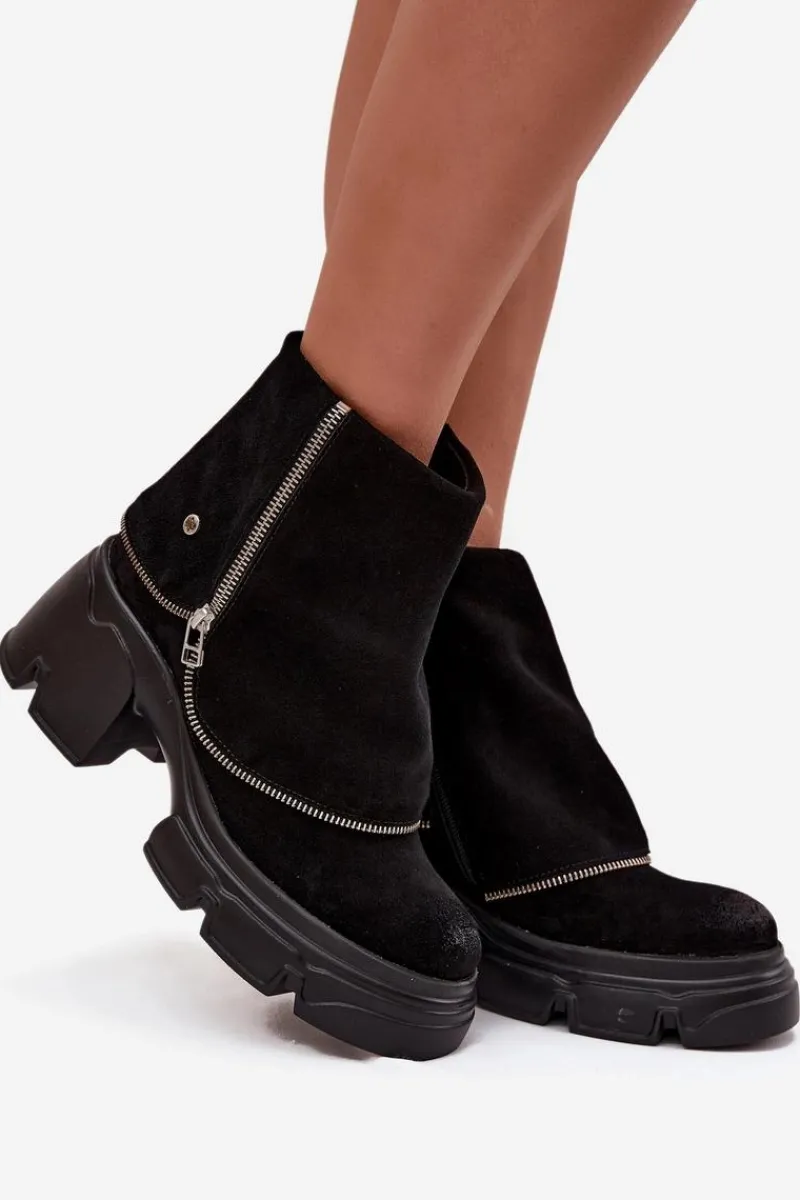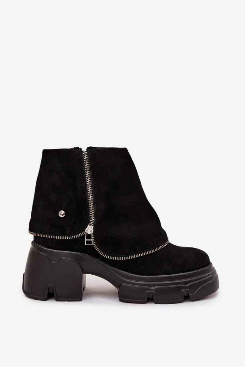 Botki damskie marki Maciejka to propozycja, która łączy oryginalny wygląd z wygodą użytkowania. Wykonane z wysokiej jakości naturalnej skóry, prezentują się elegancko i są niezwykle trwałe. Model został osadzony na stabilnym obcasie w formie klocka oraz platformie, co zapewnia komfort i pewność kroków. Charakterystycznym elementem butów jest efekt wywiniętej cholewki, który nadaje im nietuzinkowego stylu i sprawia, że wyróżniają się na tle klasycznych modeli. Wnętrze ocieplone miękkim, przyjemnym w dotyku materiałem gwarantuje ciepło i wygodę w chłodniejsze dni. Dzięki praktycznemu zapięciu na zamek botki są łatwe w zakładaniu i zdejmowaniu. To oryginalny i stylowy model, który świetnie uzupełni jesienno-zimowe stylizacje, dodając im elegancji i charakteru. Przy wyborze rozmiaru prosimy sugerować się tabelą rozmiarów.