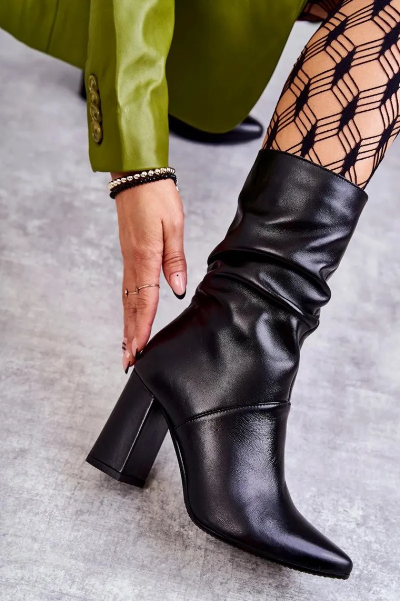Eleganckie botki świetnie sprawdzą się podczas tworzenia stylizacji w chłodniejsze dni. Botki zapinane na zamek, z elastyczną gumką na boku cholewki. W całości wykonane ze skóry naturalnej. Atutami tych botków jest przede wszystkim komfort noszenia oraz wysoka jakość wykonania. Dodatkowo posiadają usztywniany zapiętek, delikatne ocieplenie w postaci koca obuwniczego oraz obcas. Przy wyborze rozmiaru prosimy sugerować się tabelą rozmiarów.