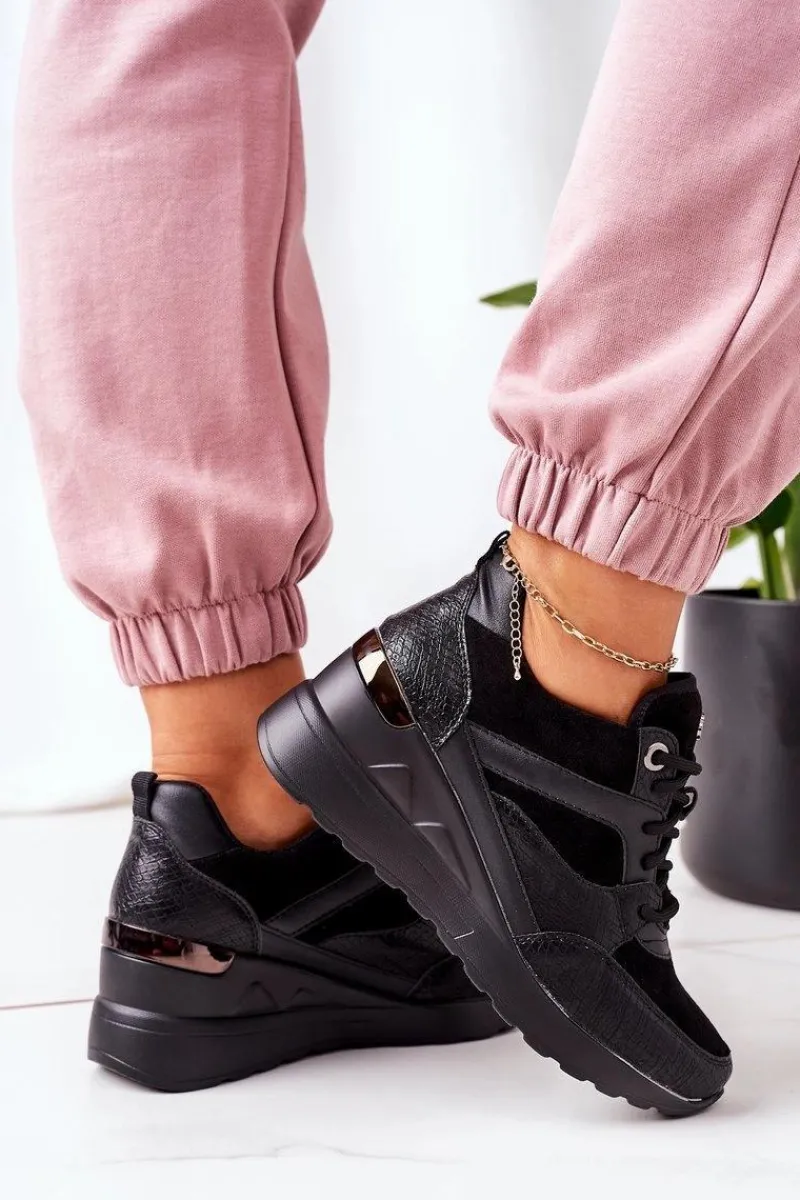 Sneakersy na koturnie wykonane z połączenia eko zamszu oraz eko skóry w delikatny zwierzęcy wzór. Przy wyborze rozmiaru prosimy kierować się tabelą rozmiarów.