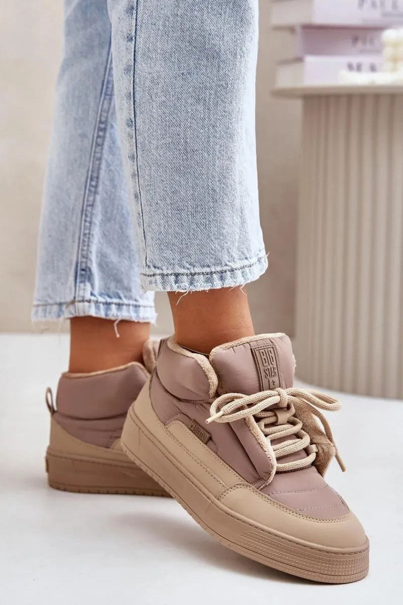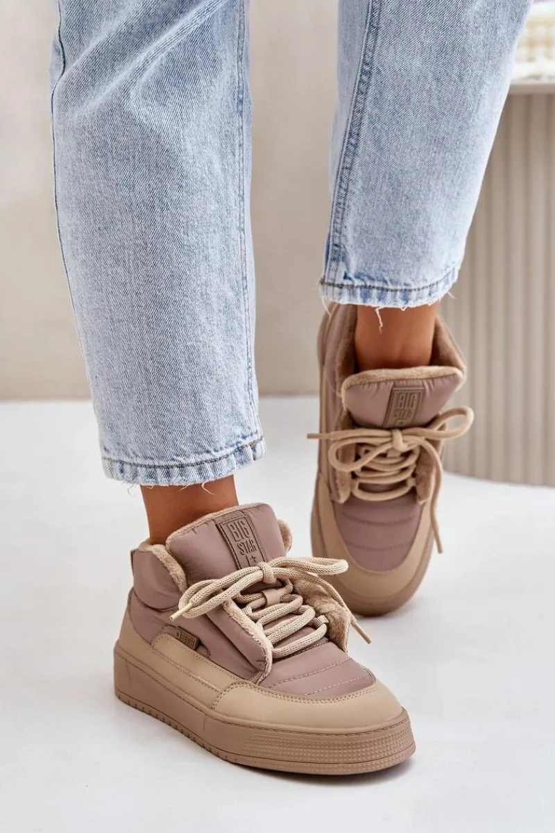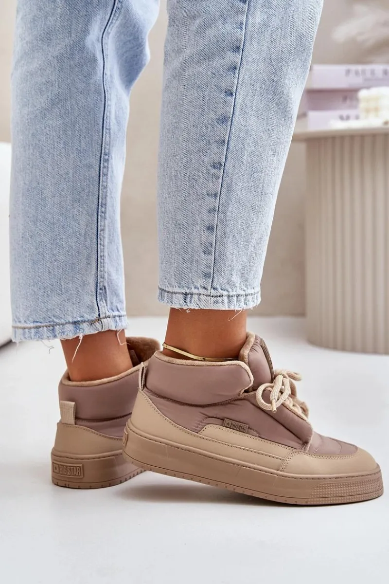 Ocieplane sneakersy od marki Big Star to stylowy wybór na chłodniejsze dni. Wykonane z materiału tekstylnego. Osadzone na podeszwie z gumowego tworzywa, zapewniają trwałość i komfort noszenia. Model sznurowany. Cholewka sięga do kostki. Idealnie sprawdzą się w codziennych, casualowych stylizacjach, gwarantując ciepło i modny wygląd. Przy wyborze rozmiaru prosimy sugerować się tabelą rozmiarów.