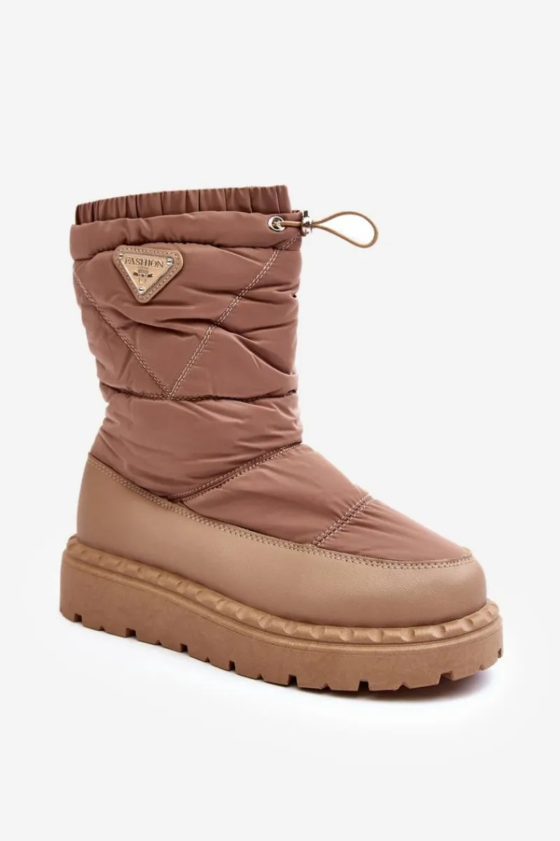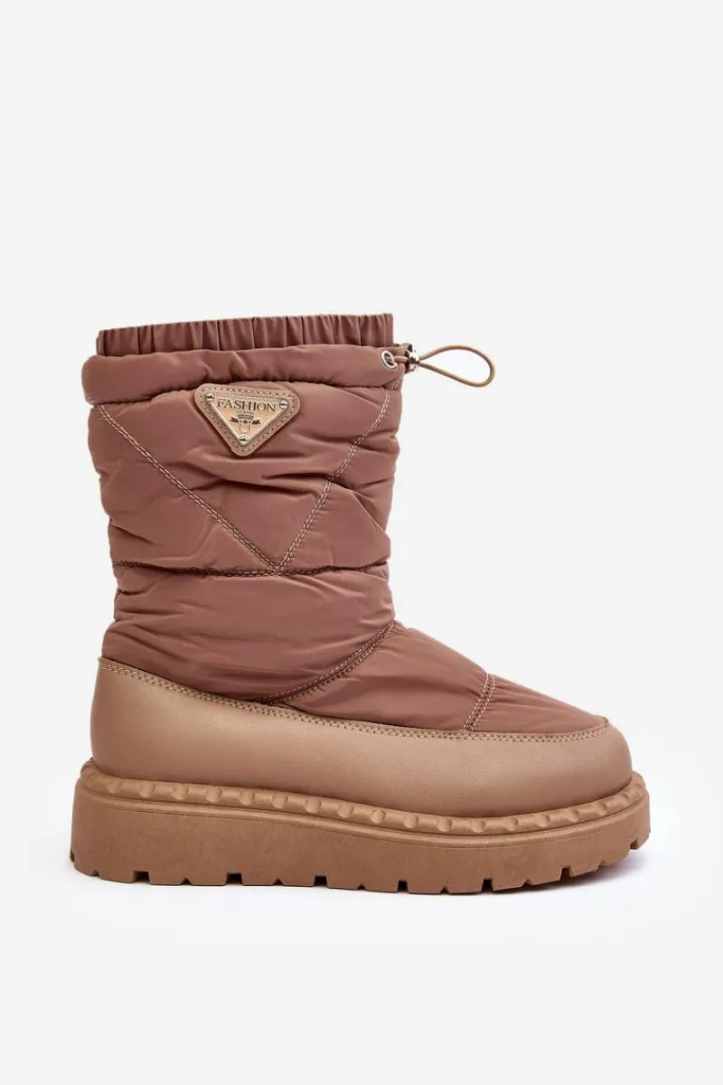 Śniegowce damskie osadzone na grubej podeszwie z gumowego tworzywa. Wykonane z połączenia eko skóry i materiału tekstylnego. Środek ocieplony grubym futerkiem. Na górze cholewki ściągacz. Idealne na mroźne dni! Koniecznie powinnaś je mieć! Przy wyborze rozmiaru prosimy sugerować się tabelą rozmiarów.