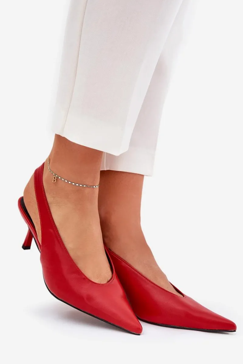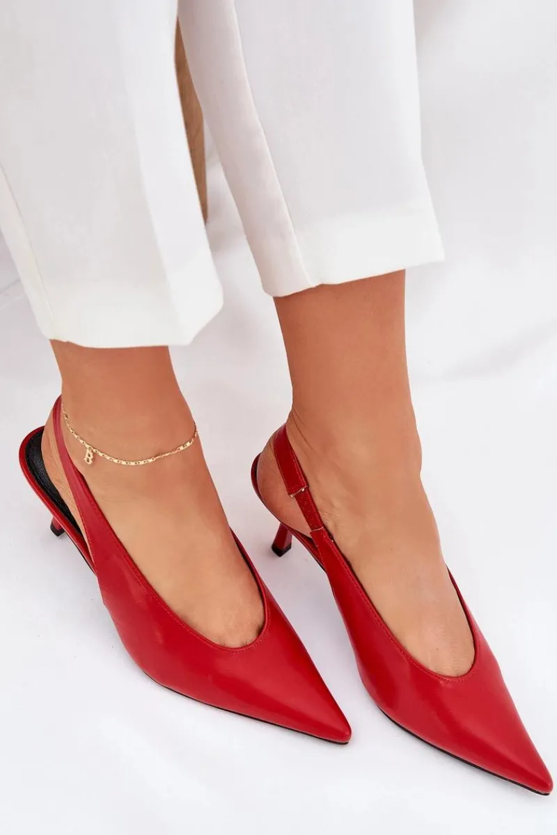 Szpilki wykonane z eko skóry stanowią doskonałą opcję na wyjątkowe wydarzenia i wieczorne spotkania. Ich klasyczne, spiczaste noski dodają elegancji i wizualnie wydłużają nogi. Pasek z gumką umieszczony z tyłu buta zapewnia lepsze dopasowanie do stopy, co przekłada się na wygodę użytkowania. Te szpilki są idealnym dodatkiem do eleganckich sukienek i spodni. Przy wyborze rozmiaru prosimy sugerować się tabelą rozmiarów.