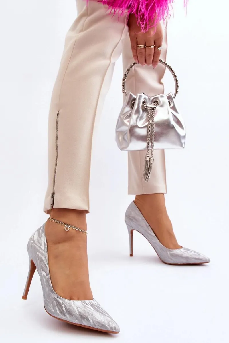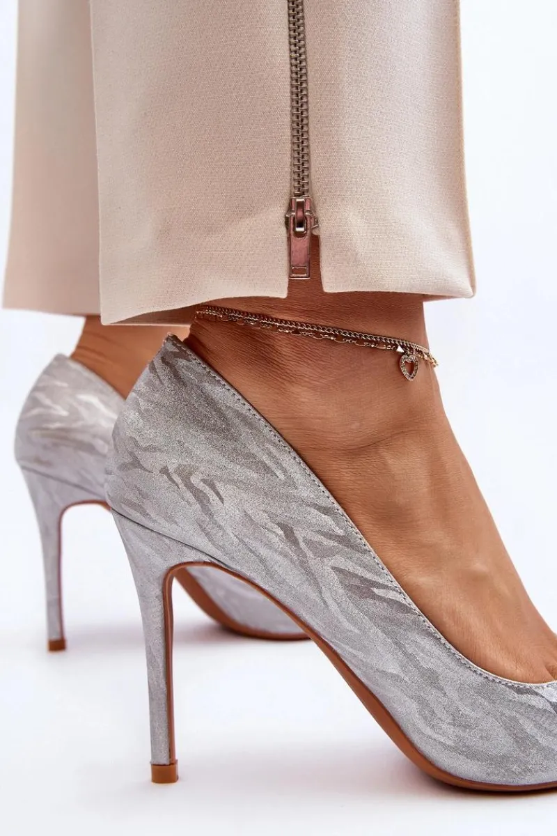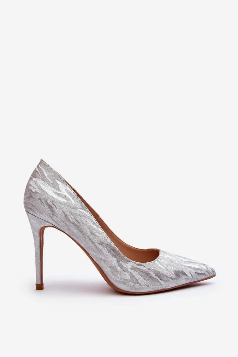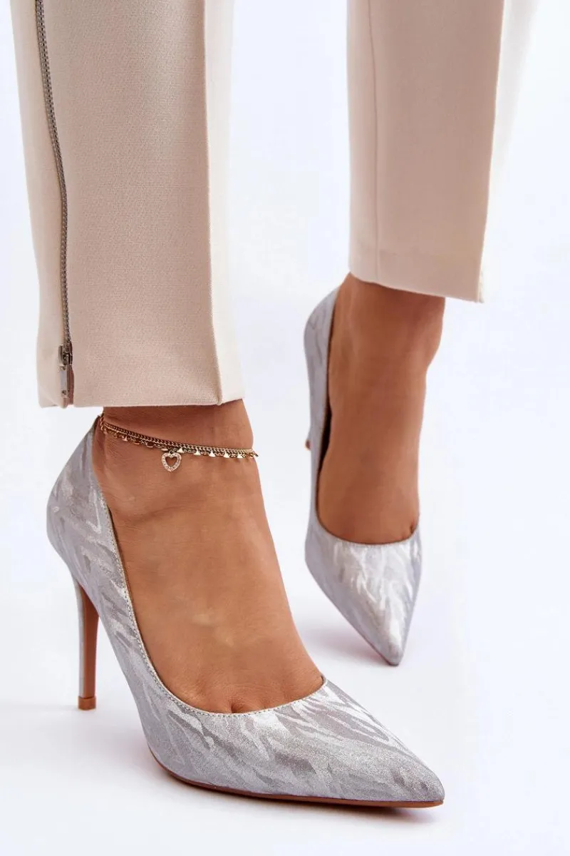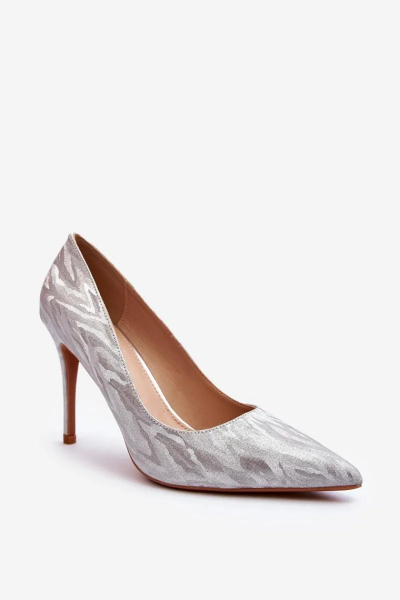 Best Szpilki Zdobione Brokatem Srebrne Klonisa Damskie Czółenka Klasyczne