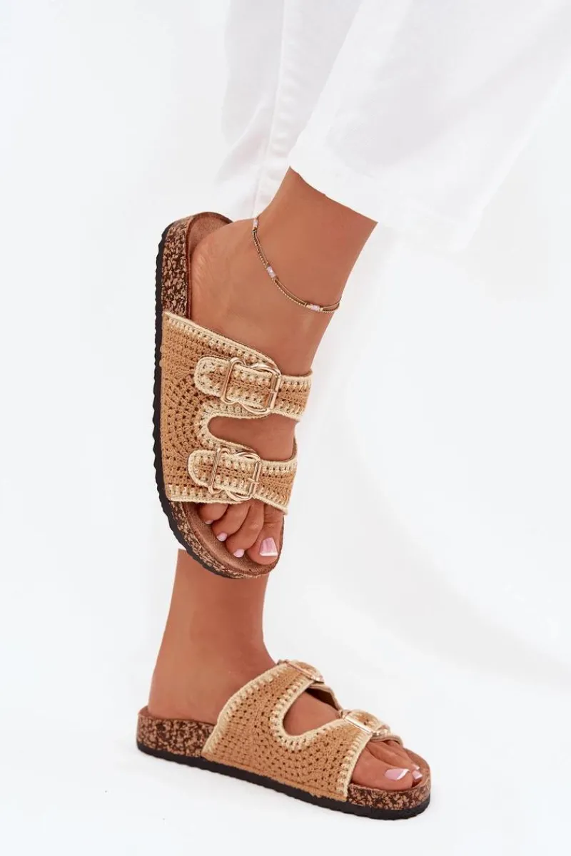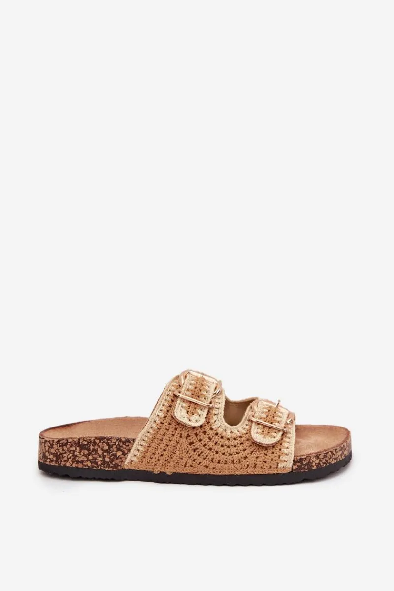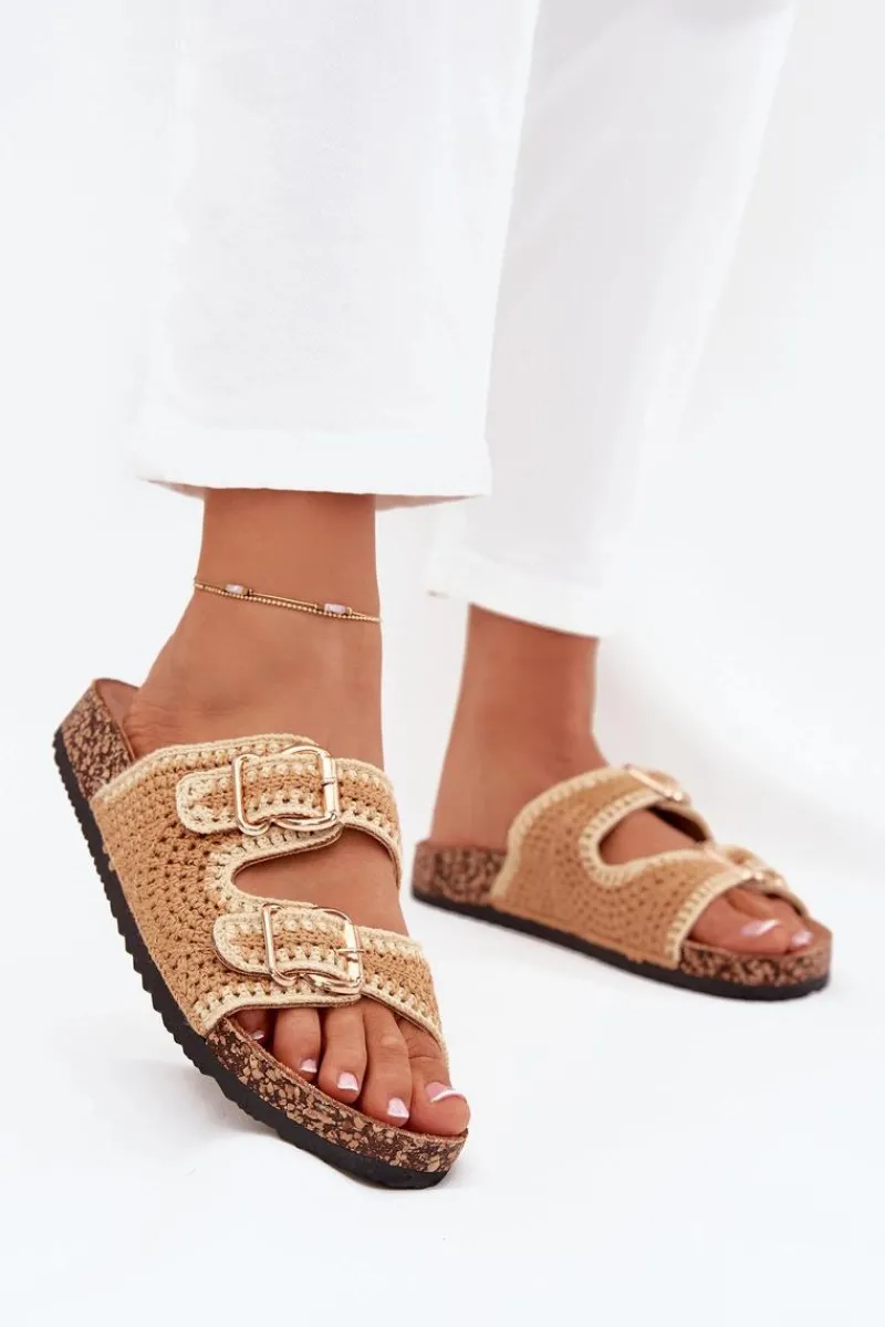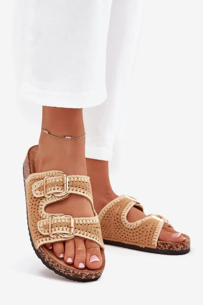 Szydełkowe klapki damskie na korkowej platformie to wyjątkowa propozycja na ciepłe dni. Dzięki profilowanej wkładce z eko zamszu zapewniają komfort i wygodę przez cały dzień. Dwie złote klamry dodają im eleganckiego charakteru. Idealne do letnich stylizacji, te klapki będą doskonałym wyborem do sukienek, spódnic i spodni. Przy wyborze rozmiaru prosimy sugerować się tabelą rozmiarów.