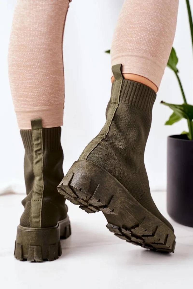Wyjątkowe botki wykonane z elastycznej tkaniny. Masywna platforma i dopasowana cholewka wysmuklą Twoje nogi! Przy wyborze rozmiaru prosimy sugerować się tabelą rozmiarów.