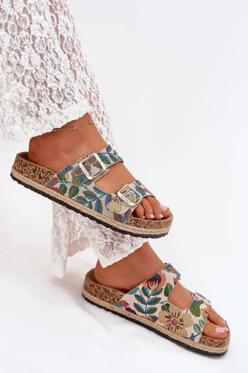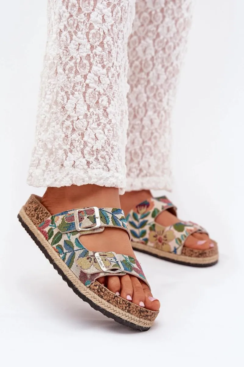 Damskie klapki marki Lee Cooper, osadzone na korkowej platformie z plecionką, to stylowa opcja na ciepłe dni. Model wyróżnia się dwoma regulowanymi paskami z klamrami z przodu, które zapewniają idealne dopasowanie do stopy. Profilowana wkładka gwarantuje komfort przez cały dzień, dbając o odpowiednią amortyzację. Te klapki to doskonały wybór do letnich stylizacji! Przy wyborze rozmiaru prosimy sugerować się tabelą rozmiarów.