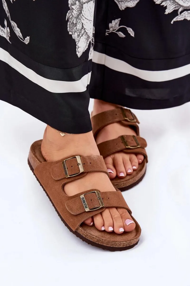 Klapki damskie z naturalnego zamszu od marki Big Star. Osadzone na platformie, to połączenie komfortu i stylu. Regulowane paski z klamrami pozwalają na idealne dopasowanie do stopy, zapewniając wygodę przez cały dzień. Profilowana wkładka dodatkowo zwiększa komfort. Te klapki będą doskonałym wyborem na co dzień, idealnie komponując się z letnimi stylizacjami. Przy wyborze rozmiaru prosimy sugerować się tabelą rozmiarów.