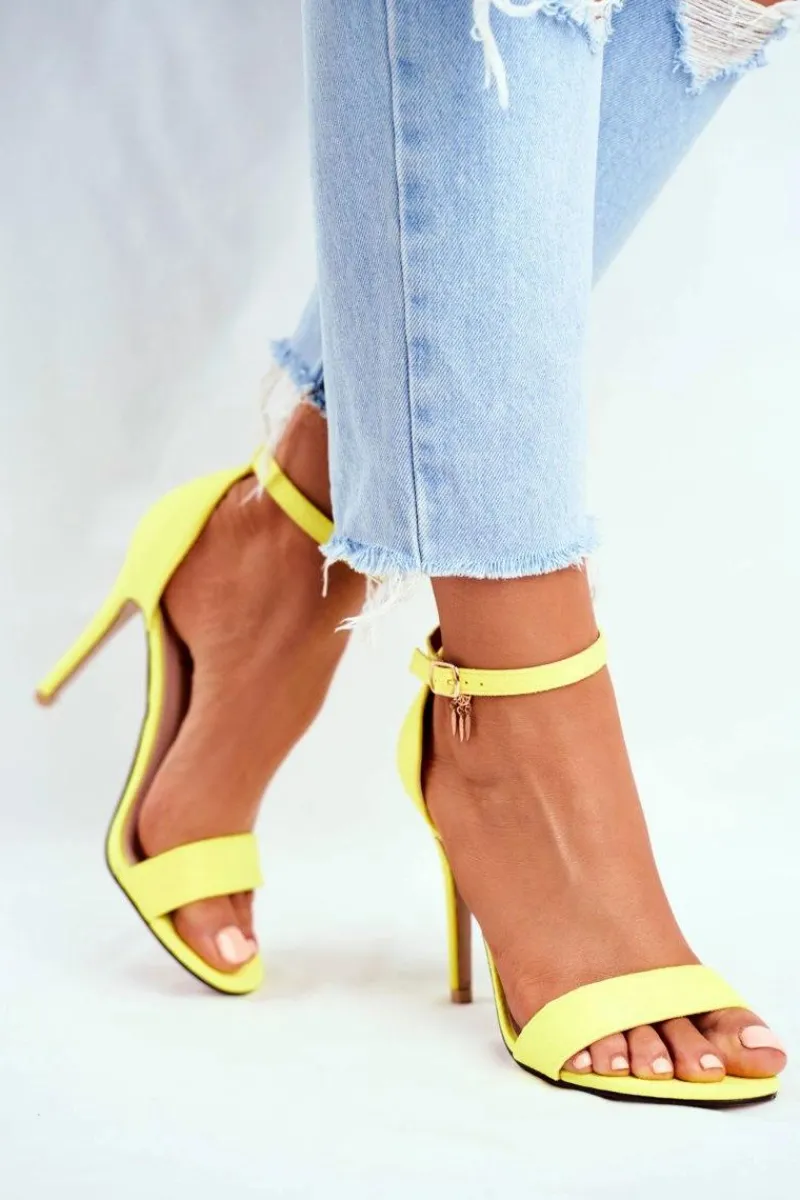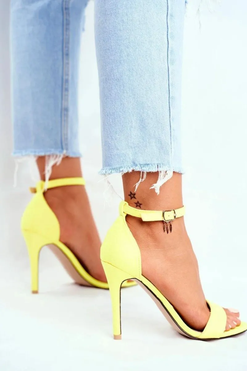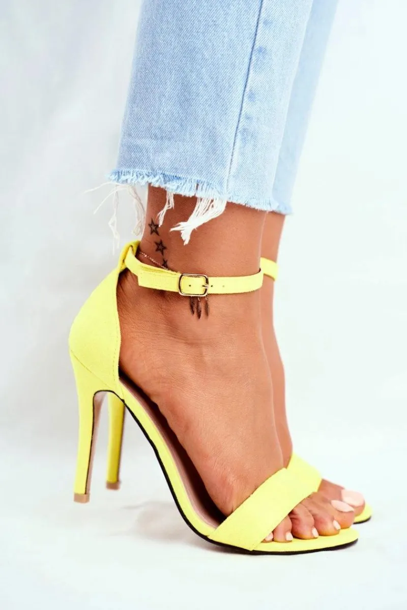 Klasyczne sandały na szpilce wykonane z eko zamszu. Przy wyborze rozmiaru prosimy sugerować się tabelą rozmiarów.