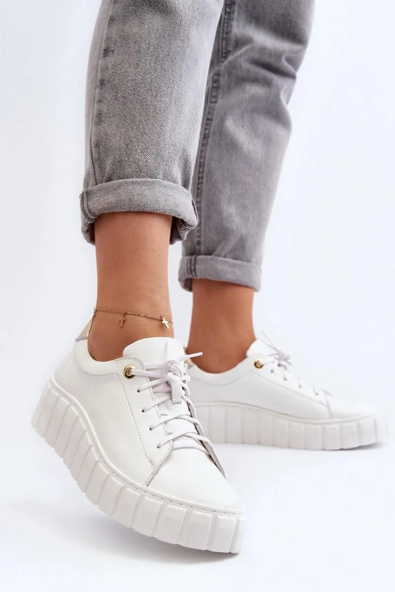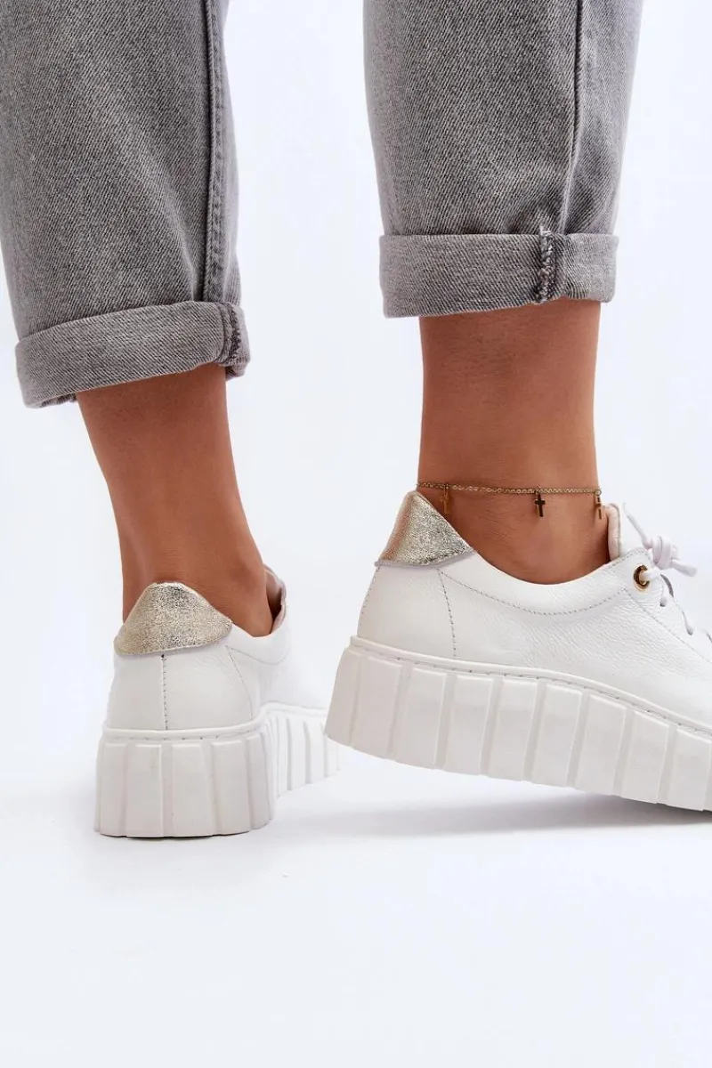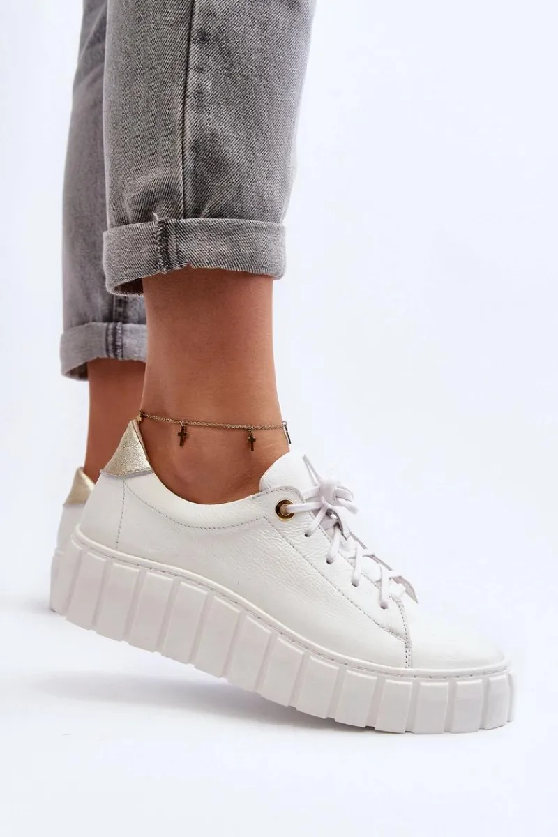 Półbuty damskie wykonane ze skóry naturalnej. Osadzone na grubej podeszwie z gumowego tworzywa. Model klasycznie sznurowany. Noski zaokrąglone. Miękka wkładka ze skóry naturalnej zapewni komfort podczas użytkowania. Idealne do wielu stylizacji. Koniecznie powinnaś je mieć! Przy wyborze rozmiaru prosimy sugerować się tabelą rozmiarów.