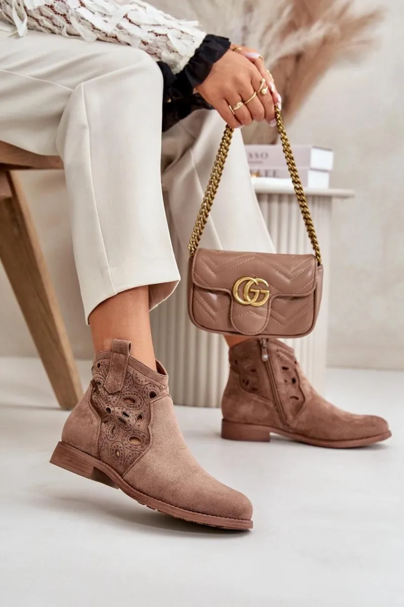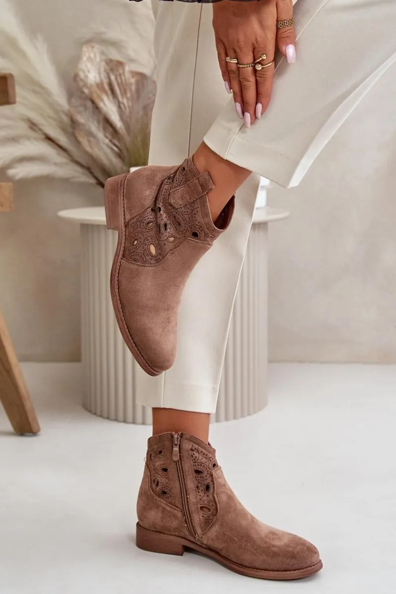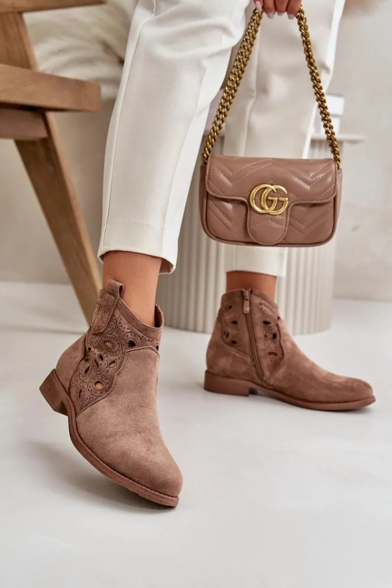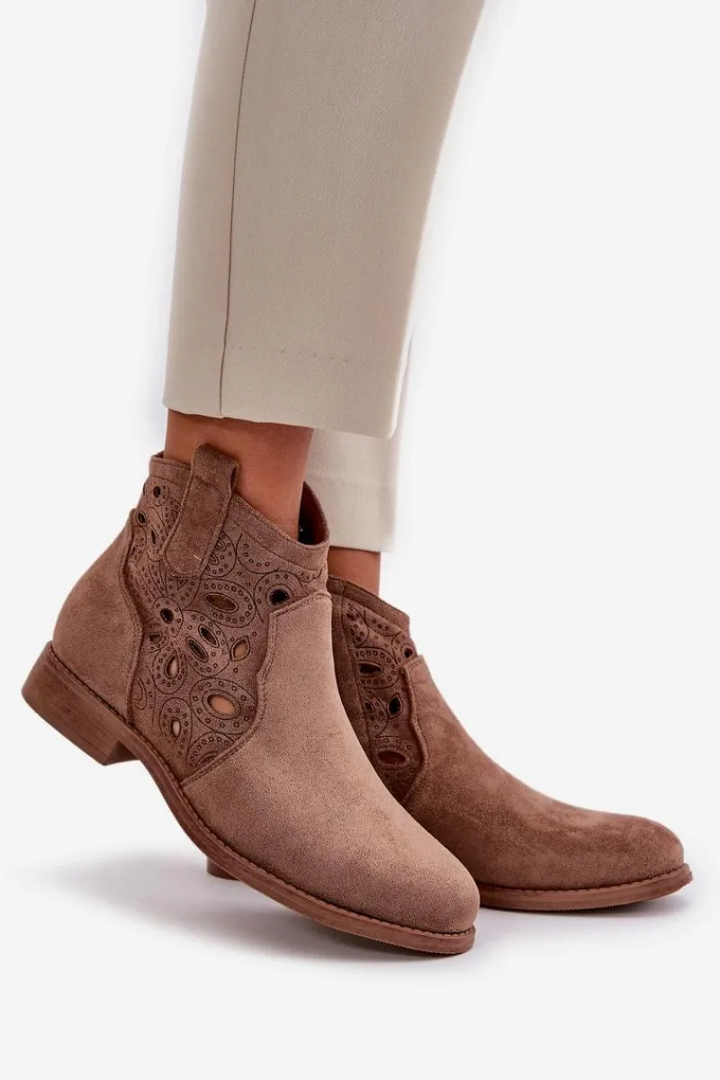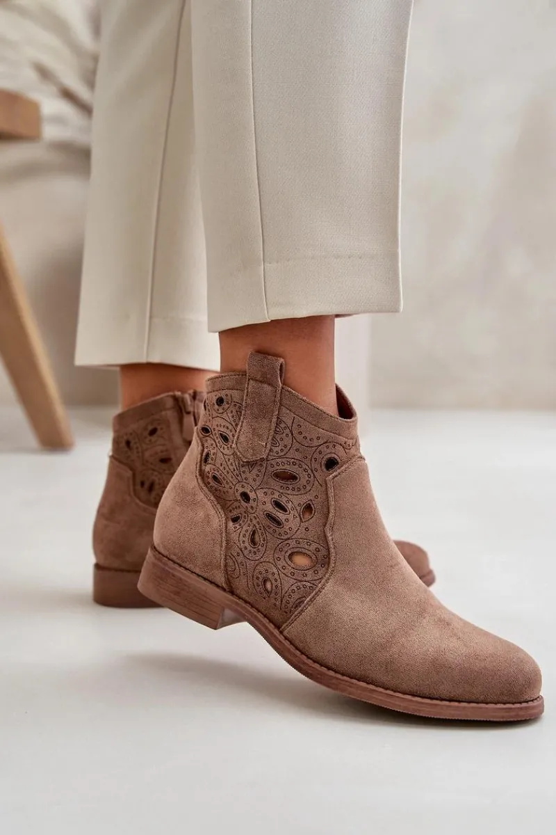 Botki Ażurowe|Botki Płaskie>Damskie buty S.Barski Botki Damskie Ażurowe Na Zamek Brązowe S.Barski HY42-081