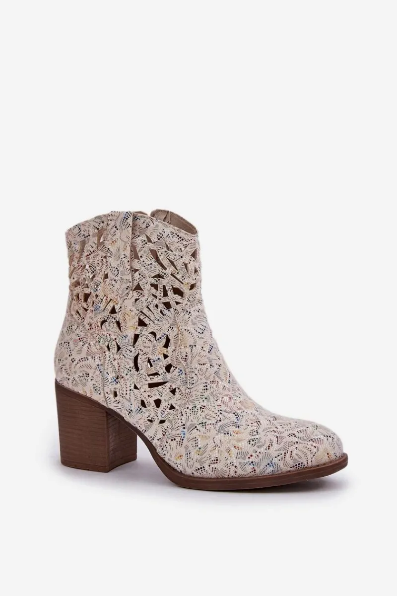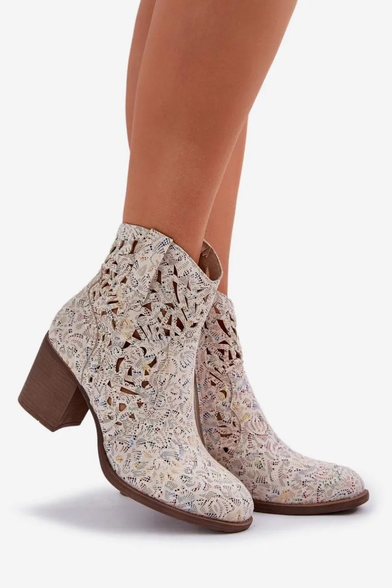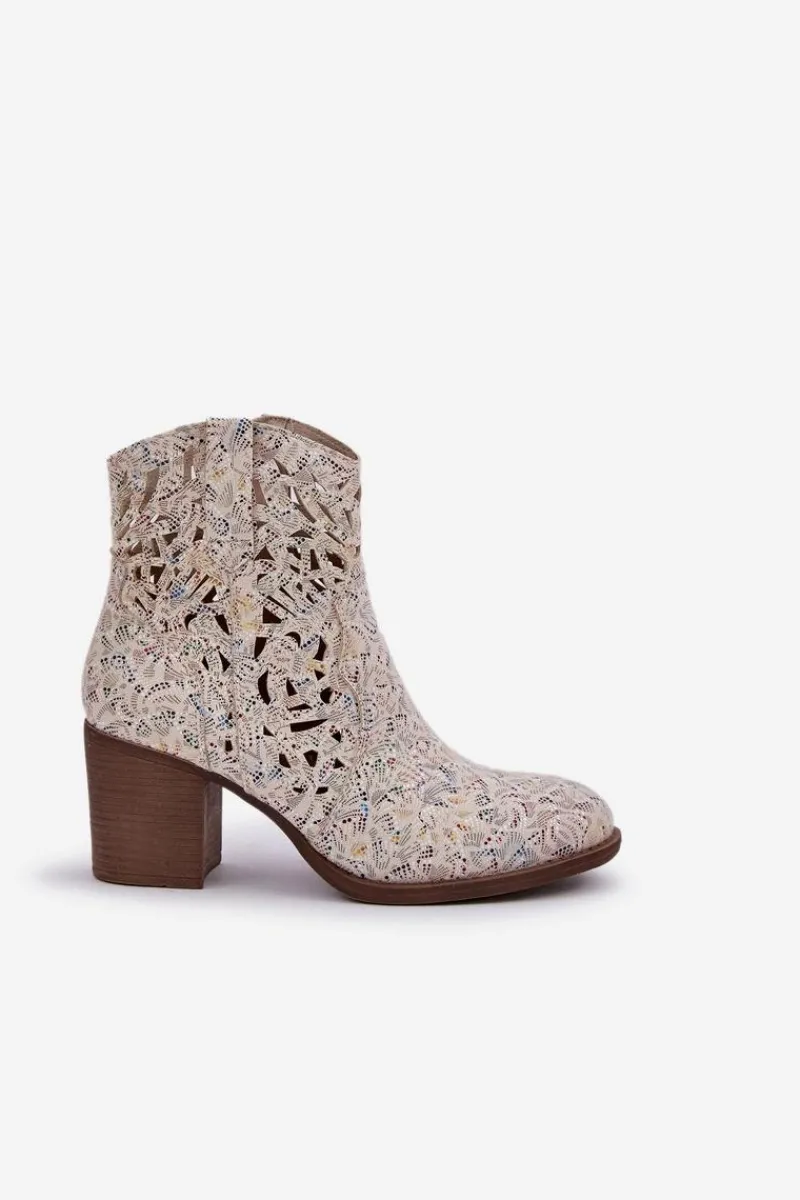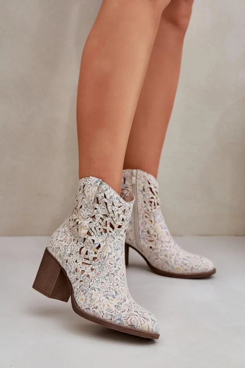 Botki Ażurowe|Brązowe I Beżowe Botki>Boto Ażurowe Botki Na Słupkowym Obcasie Multikolor Nurissa