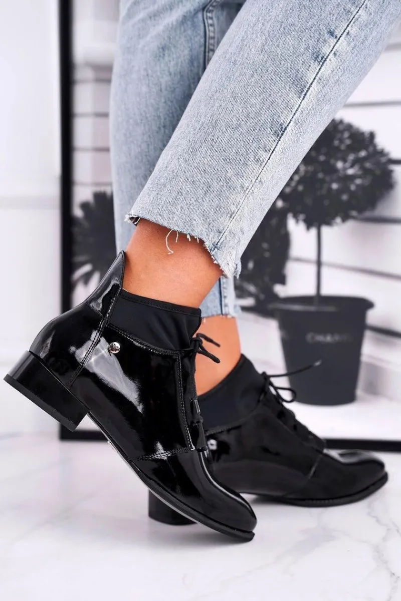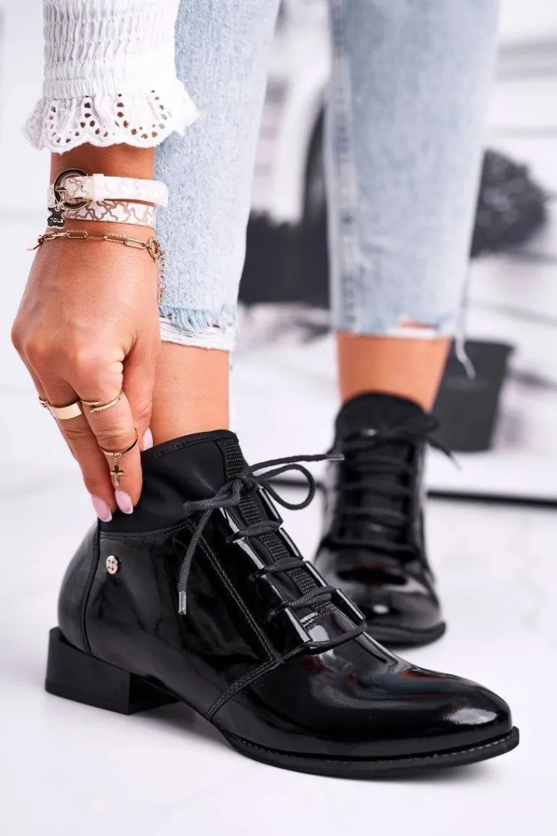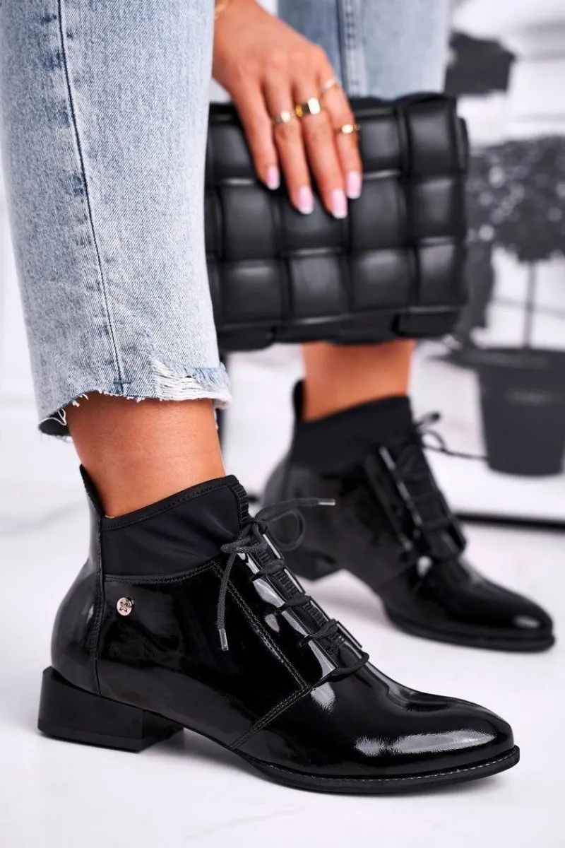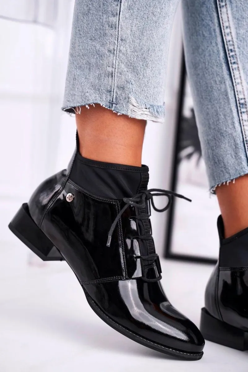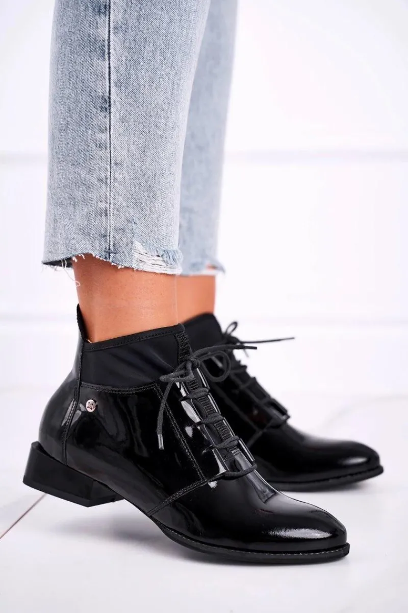 Botki Maciejka|Botki Sznurowane>Maciejka Botki Damskie Skórzane Trzewiki Czarne 04744-01