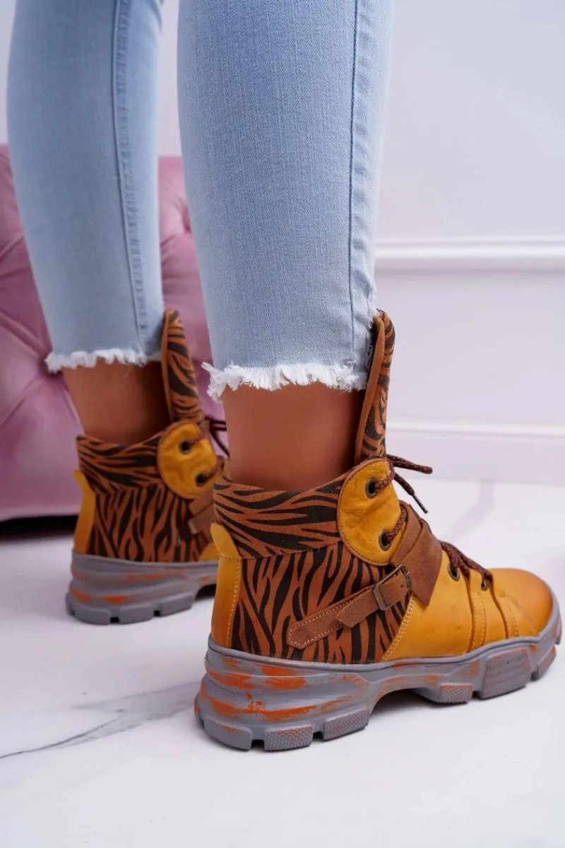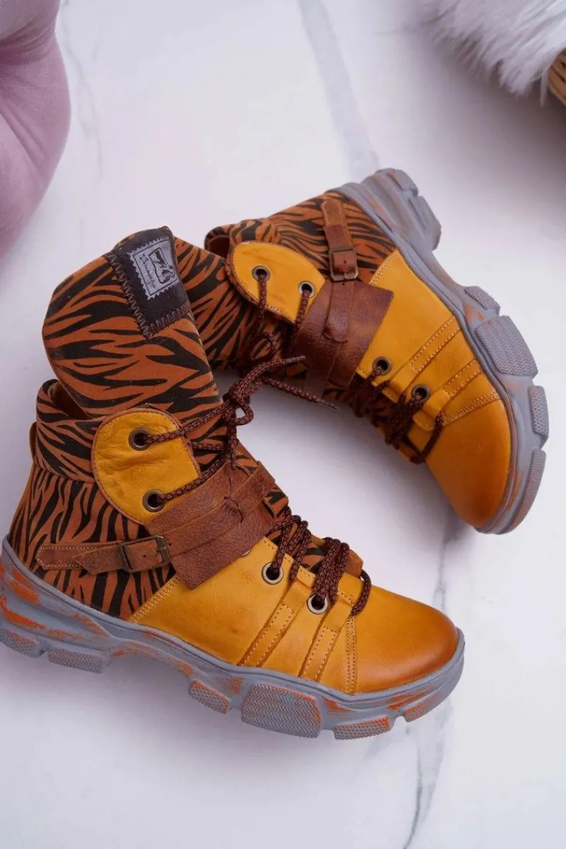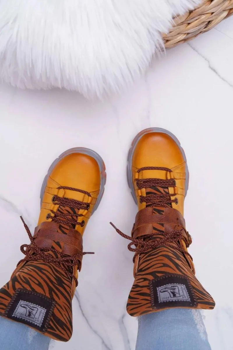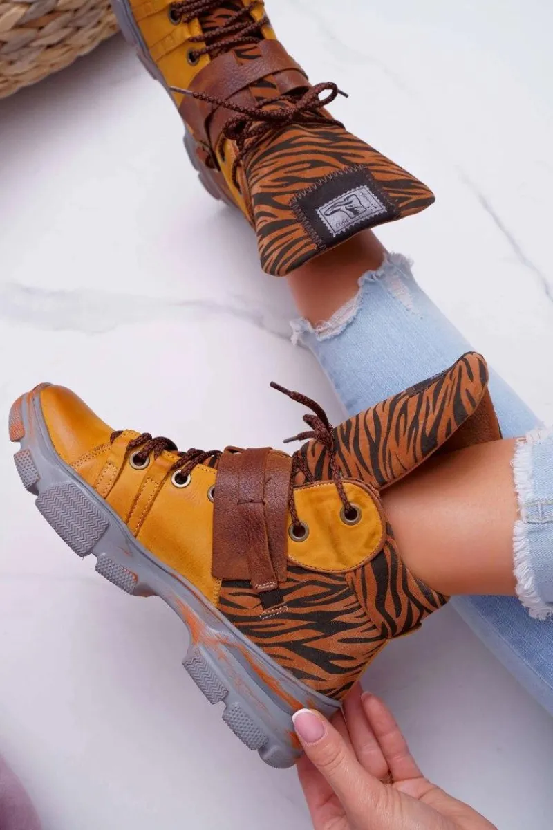 Botki Maciejka|Brązowe I Beżowe Botki>Maciejka Botki Damskie Skórzane Trzewiki Żółte 04218