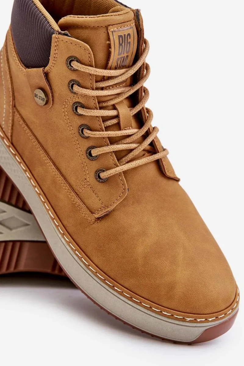 Męskie botki od Big Star wykonane z trwałej eko skóry to stylowy i funkcjonalny wybór na co dzień. Sznurowanie zapewnia doskonałe dopasowanie i stabilność podczas noszenia. W butach zastosowano oddychającą wkładkę HI-POLY SYSTEM, która skutecznie absorbuje wilgoć, amortyzuje wstrząsy, a także jest odporna na ścieranie i odkształcenia, co gwarantuje długotrwały komfort. Przy wyborze rozmiaru prosimy sugerować się tabelą rozmiarów.