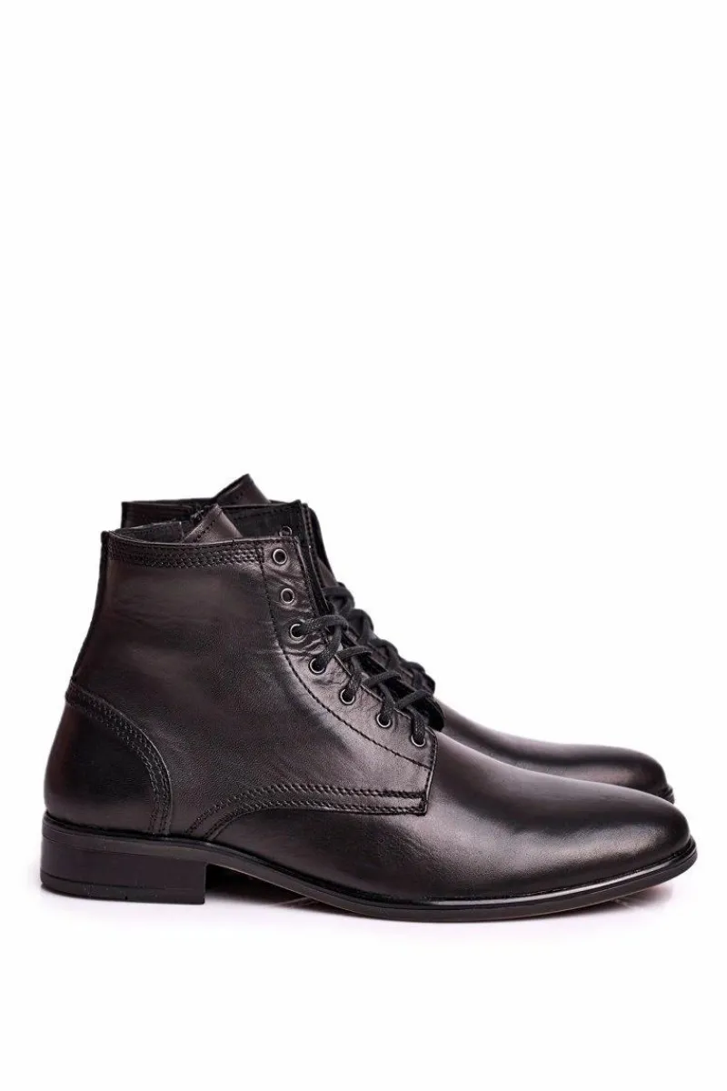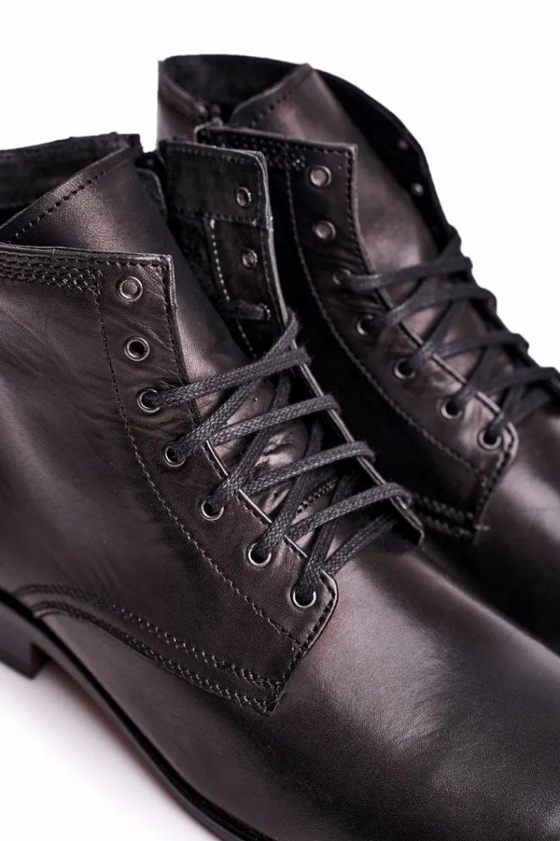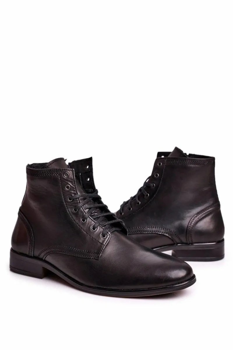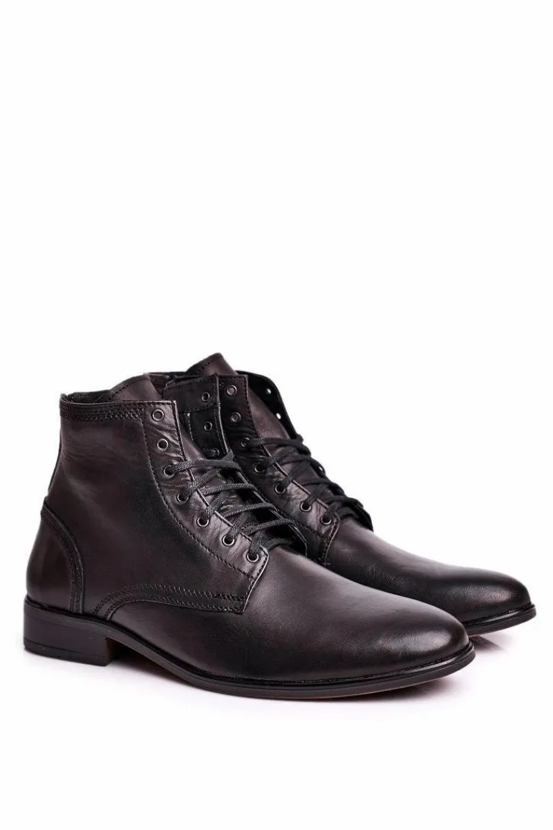 Botki Męskie>Boto Męskie botki trzewiki skórzane czarne Bruno