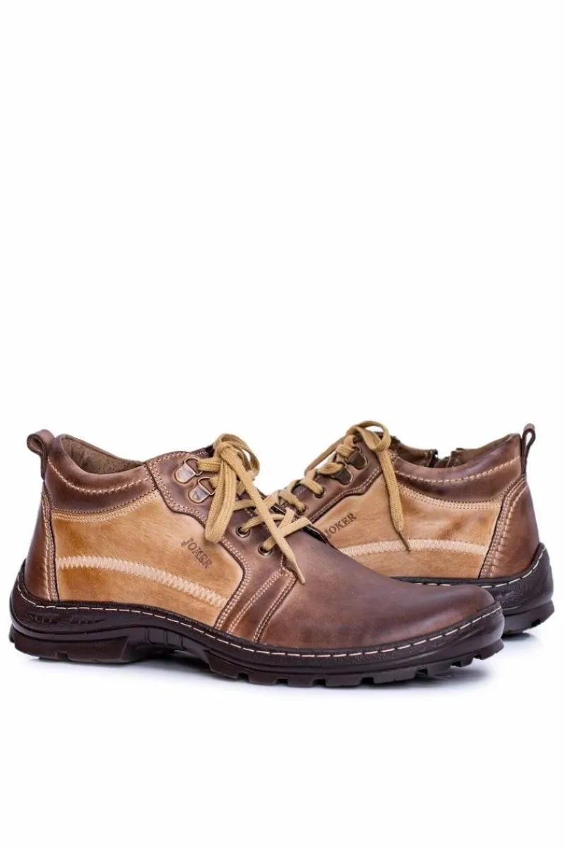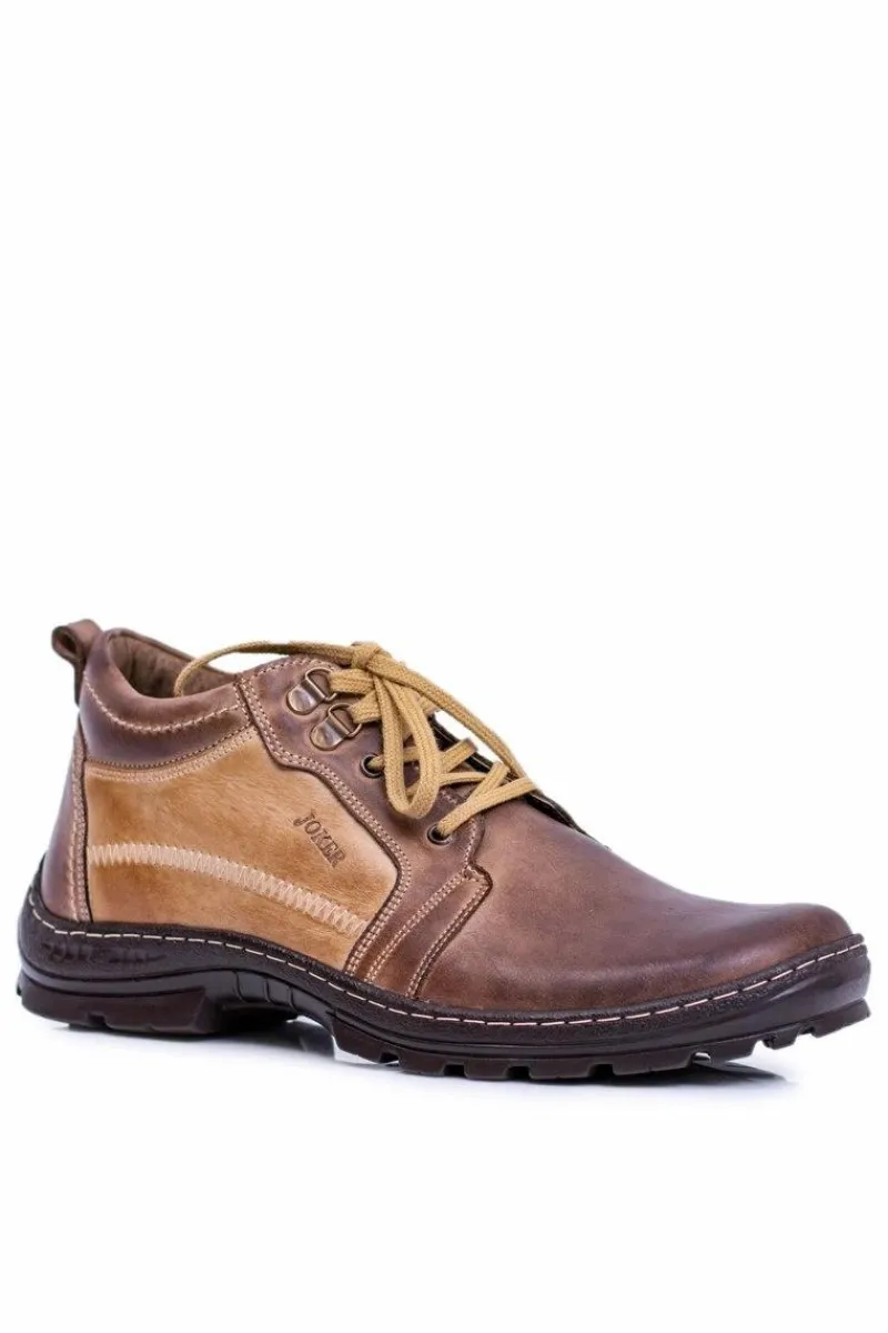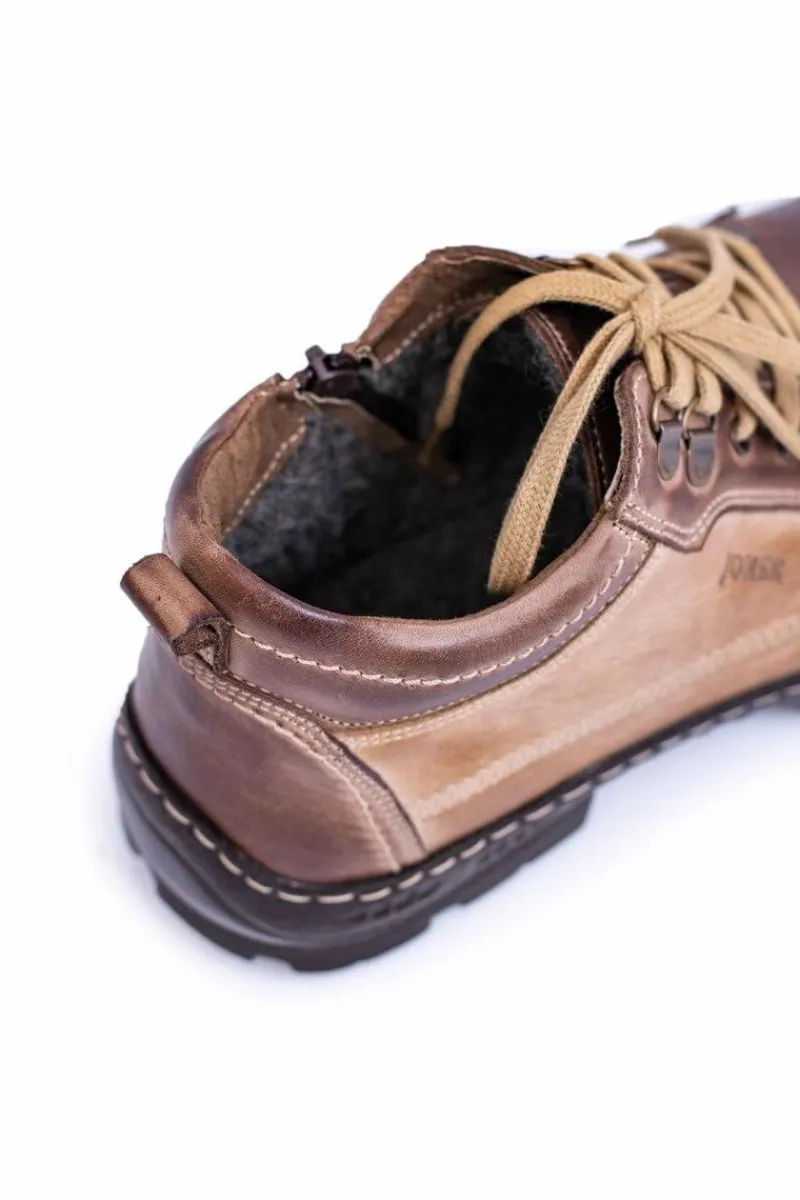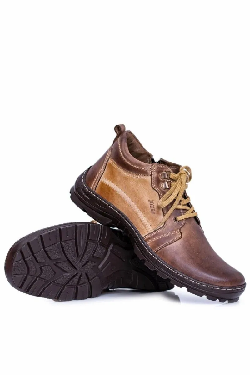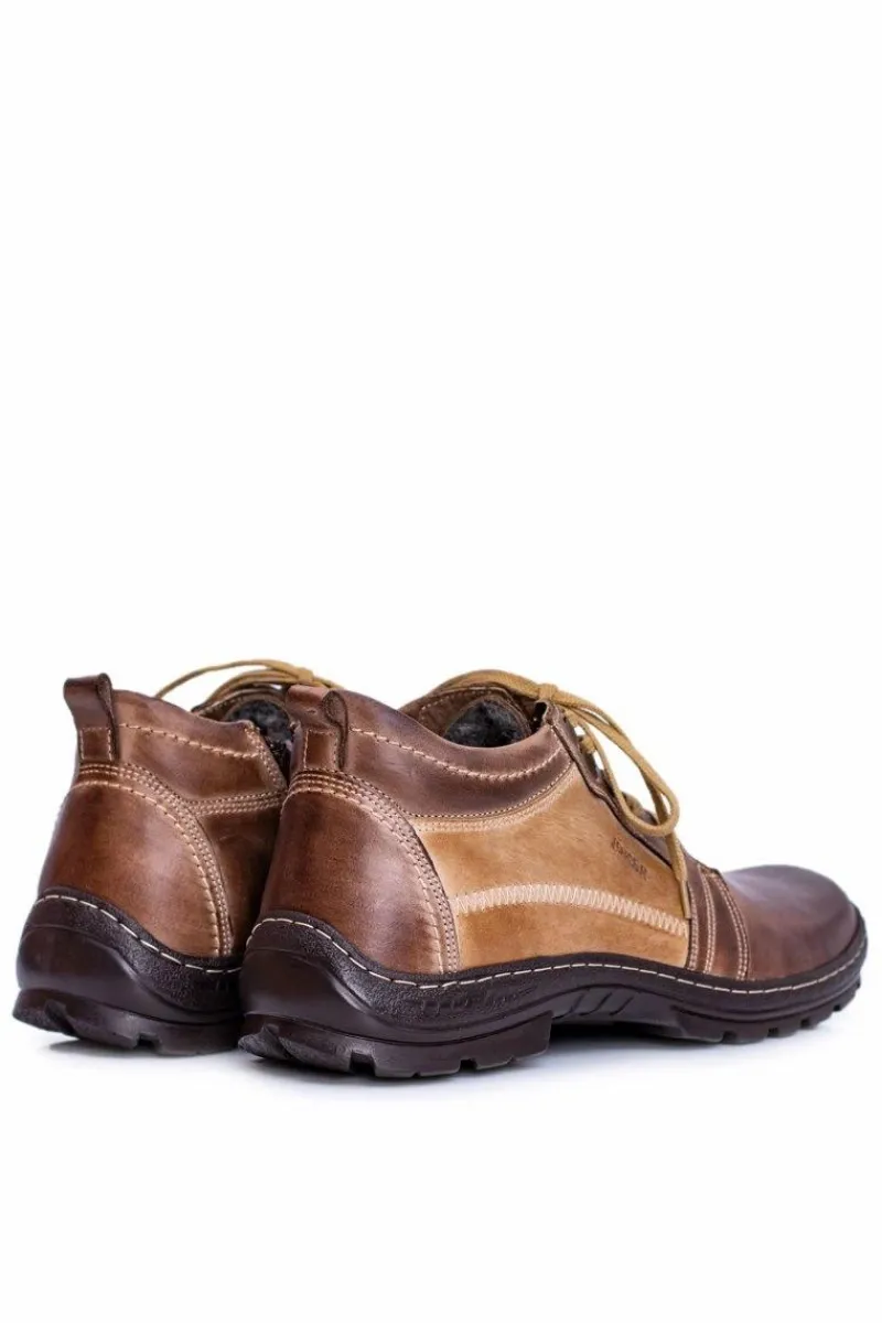 Botki Męskie>Boto Skórzane Męskie Botki Ocieplane Trzewiki Brązowe Felgado