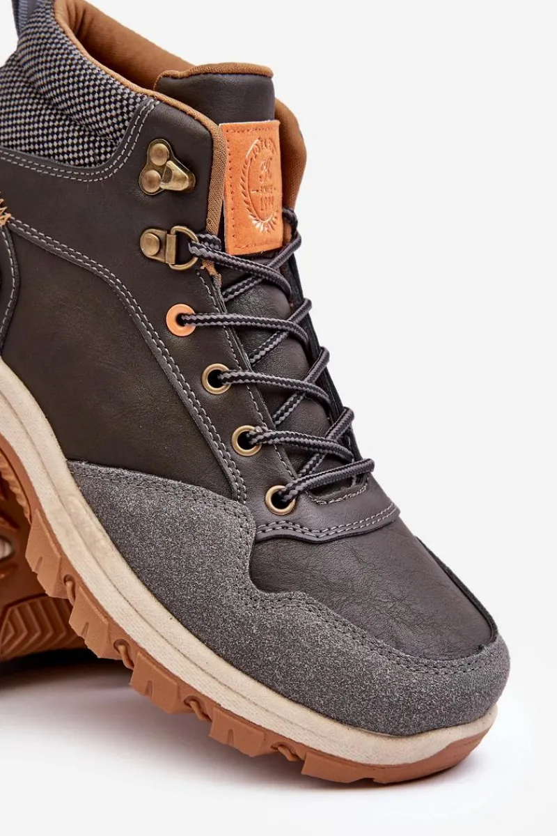 Buty trekkingowe męskie świetnie sprawdzą się podczas jesienno-zimowych dni. Osadzone na grubej podeszwie z gumowego tworzywa. Wykonane z eko skóry. Noski zaokrąglone. Klasyczne sznurowanie zapewni odpowiednie dopasowanie do tęgości nogi. Miękka, materiałowa wkładka zapewni komfort podczas użytkowania obuwia. Przy wyborze rozmiaru prosimy kierować tabelą rozmiarów.