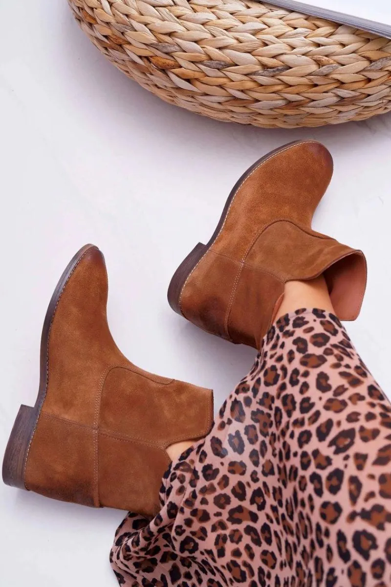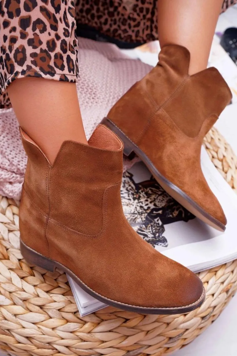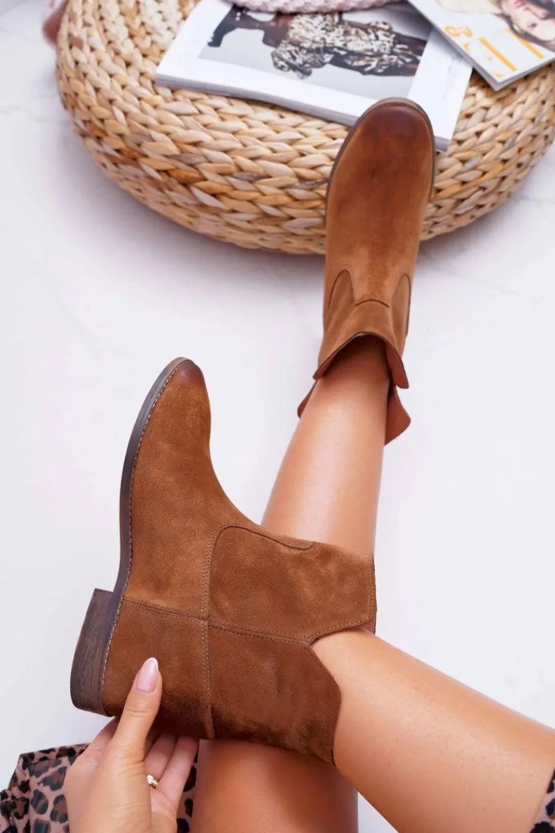 Wsuwane botki w stylu kowbojek nigdy nie wychodzą z mody. Są z nami w każdym sezonie i zawsze wyglądają oszałamiająco! Delikatny płaski obcas oraz ukryty wewnątrz koturn, idealnie uniesie i wyeksponuje naszą sylwetkę. Botki wykonane w całości z naturalnej skóry zamszowej. Wkładka to również skóra, która da nam dodatkowe poczucie komfortu. Przy wyborze rozmiaru prosimy sugerować się tabelą rozmiarów, która dostępna jest po najechaniu bądź kliknięciu w dany rozmiar.