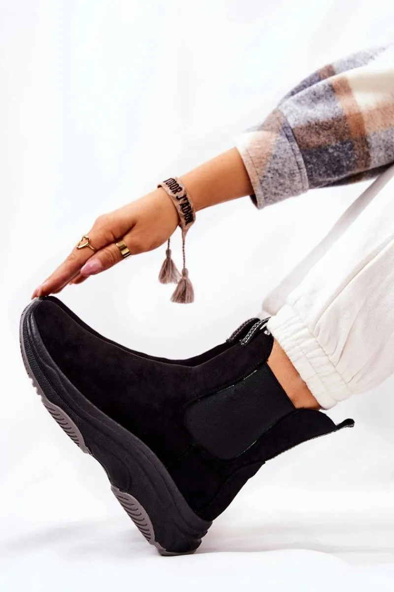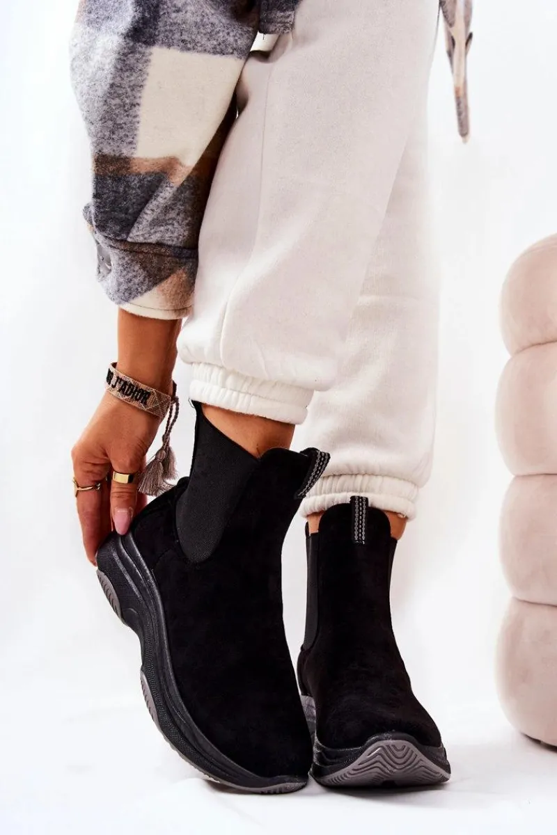 Botki na platformie zostały wykonane z miłego w dotyku eko zamszu. Na cholewce znajdują się ściągacze, które dopasują się do tęgości cholewki. Buty nie są ocieplane. Botki na stabilnej podeszwie zapewnią komfort i wygodę. Będą pasować do wielu jesienno-zimowych stylizacji. Koniecznie sprawdź także pozostałe nasze modele botków! Przy wyborze rozmiaru prosimy sugerować się tabelą rozmiarów.