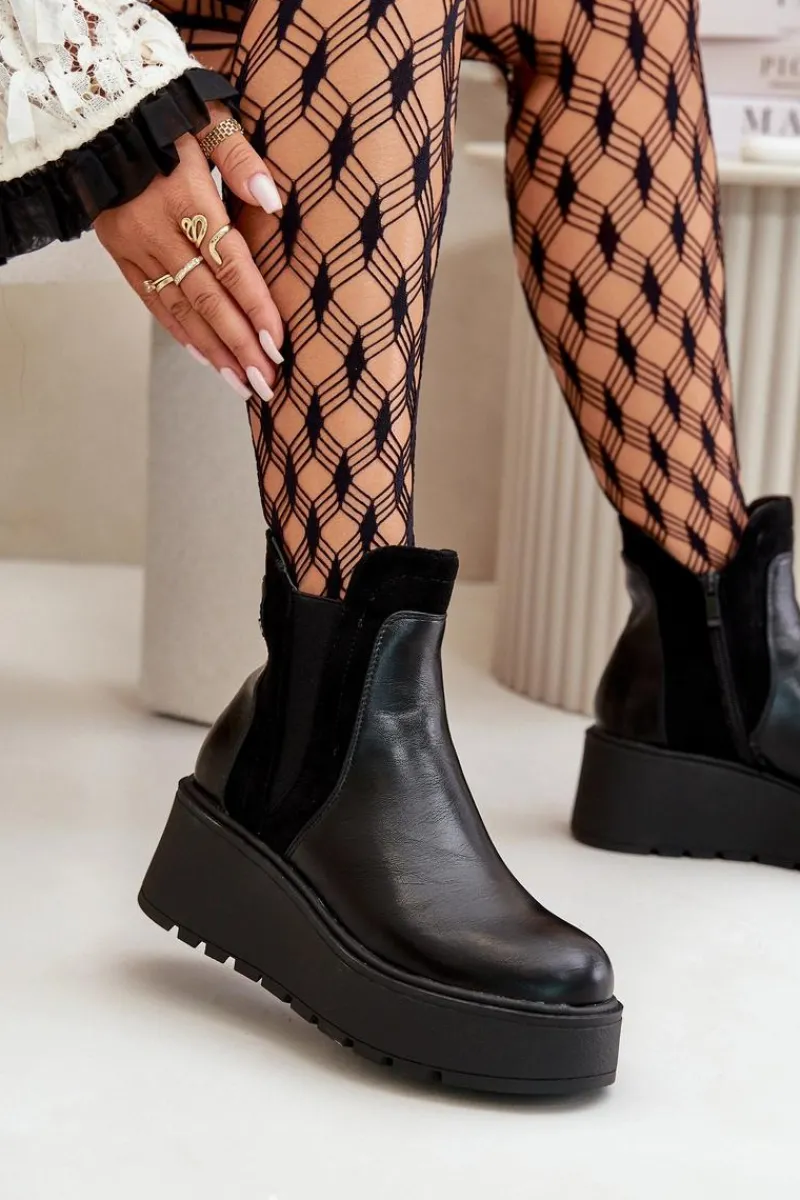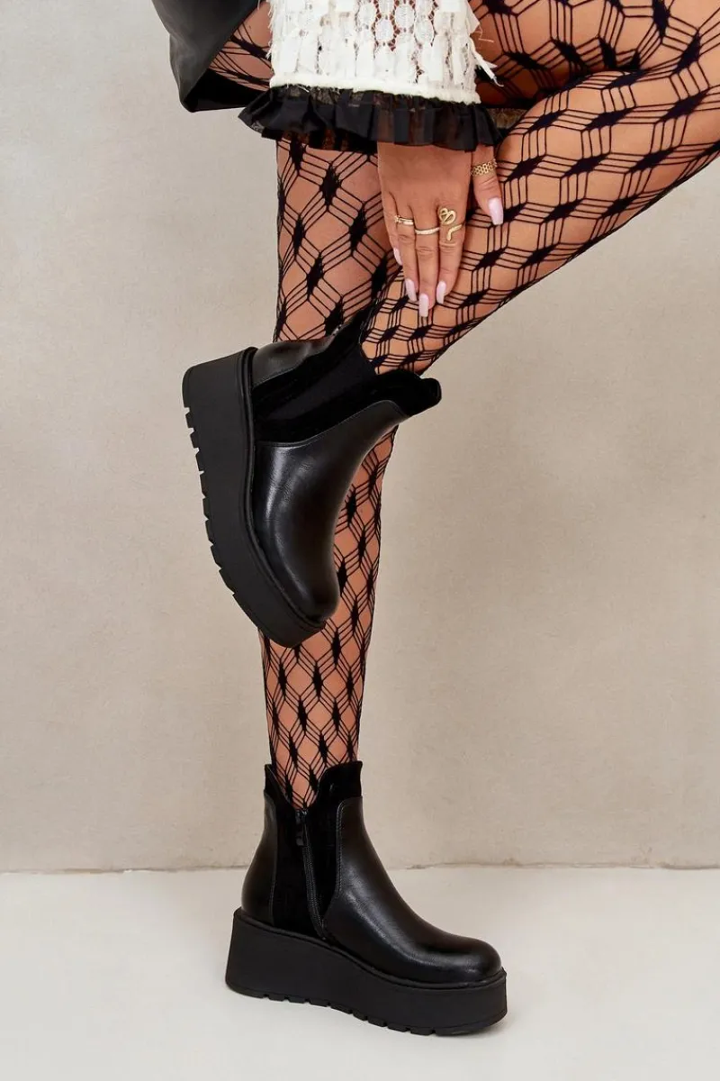 Botki Na Koturnie|Czarne Botki>Boto Damskie Ocieplane Botki Na Platformie I Koturnie Czarne Mivanira