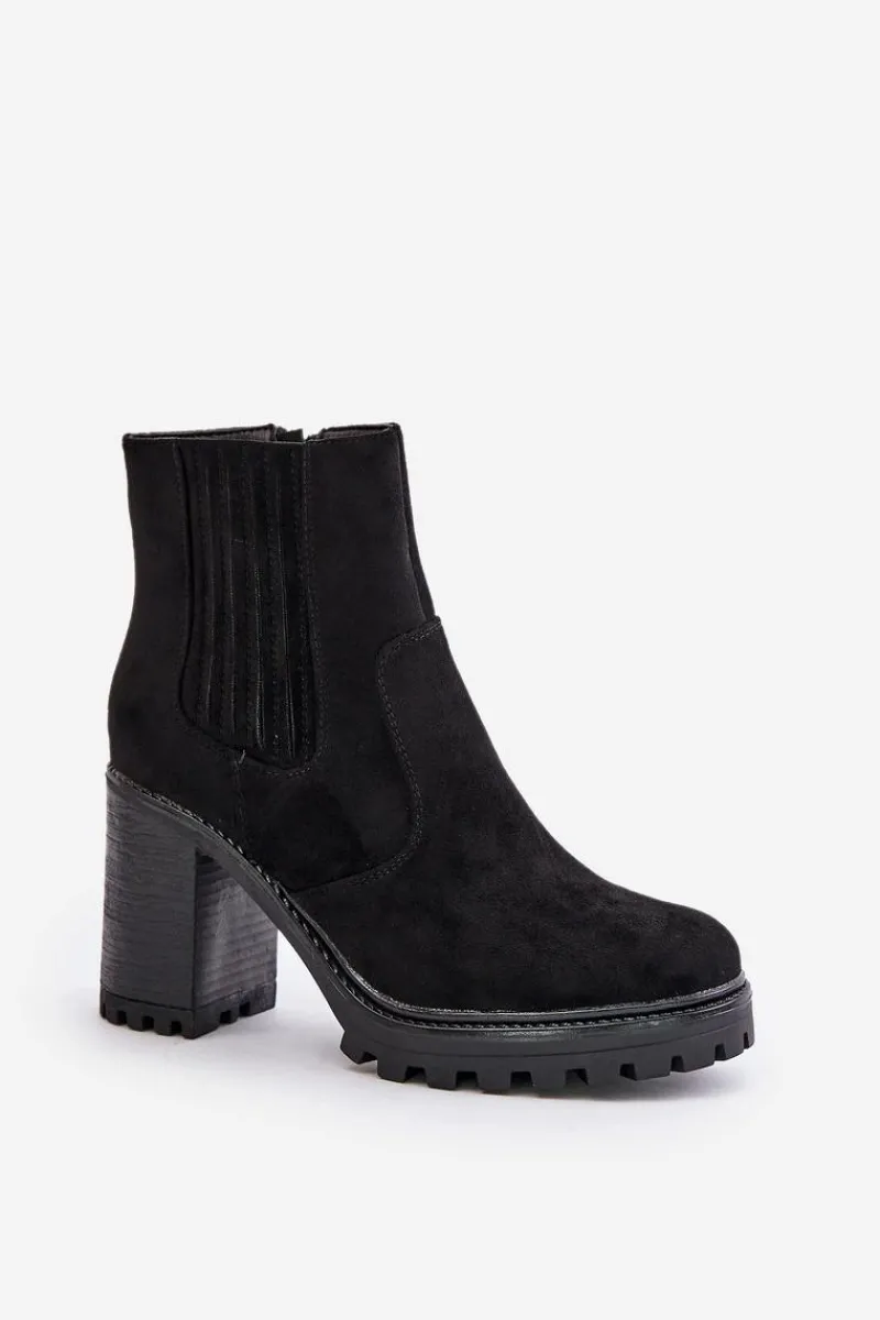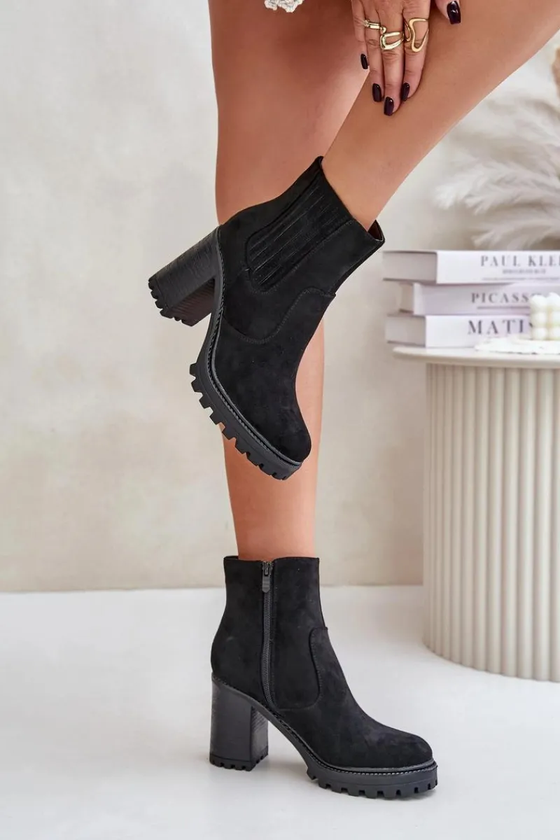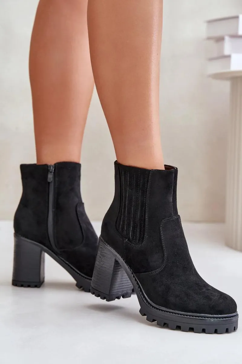 Botki Na Obcasie|Botki Zamszowe>Boto Botki Na Słupku Z Eko Zamszu Czarne Mesiella