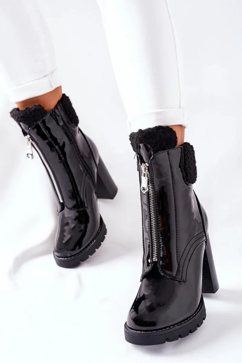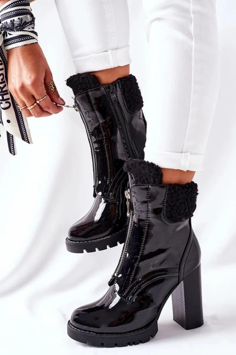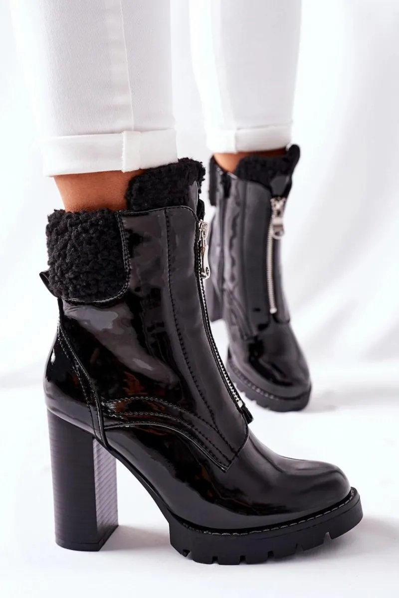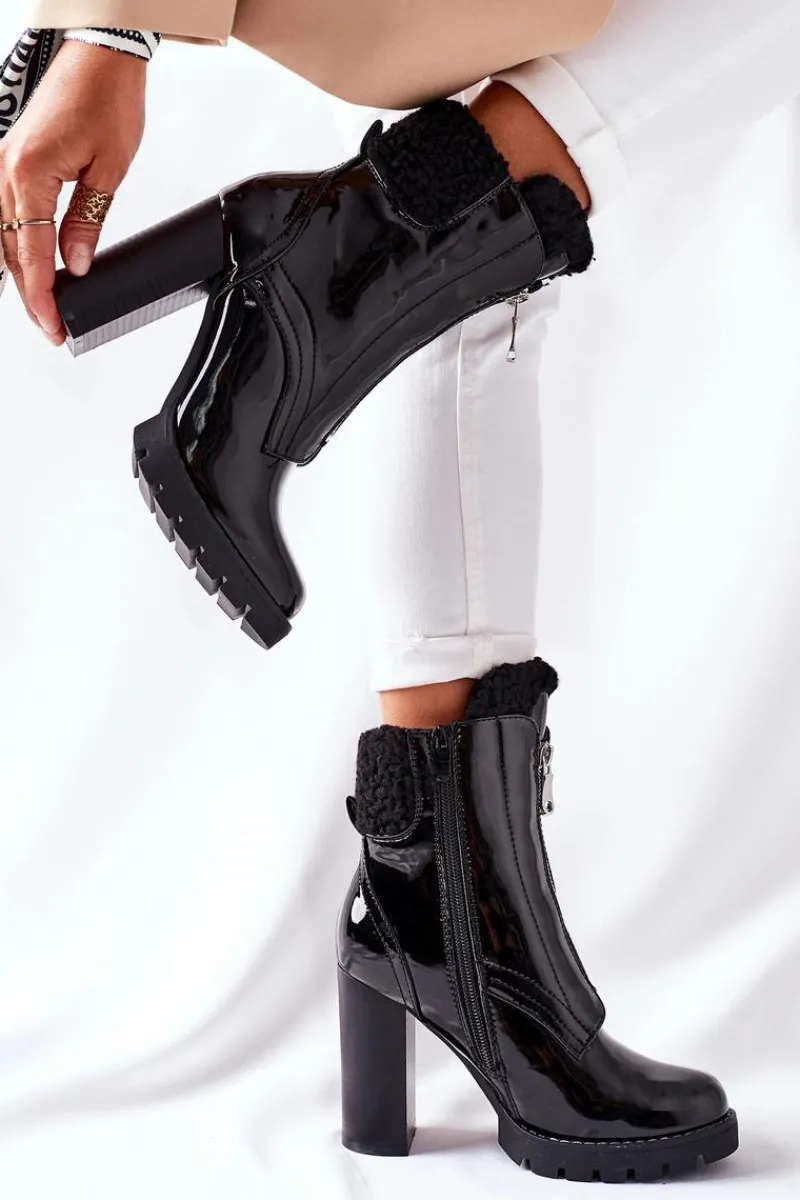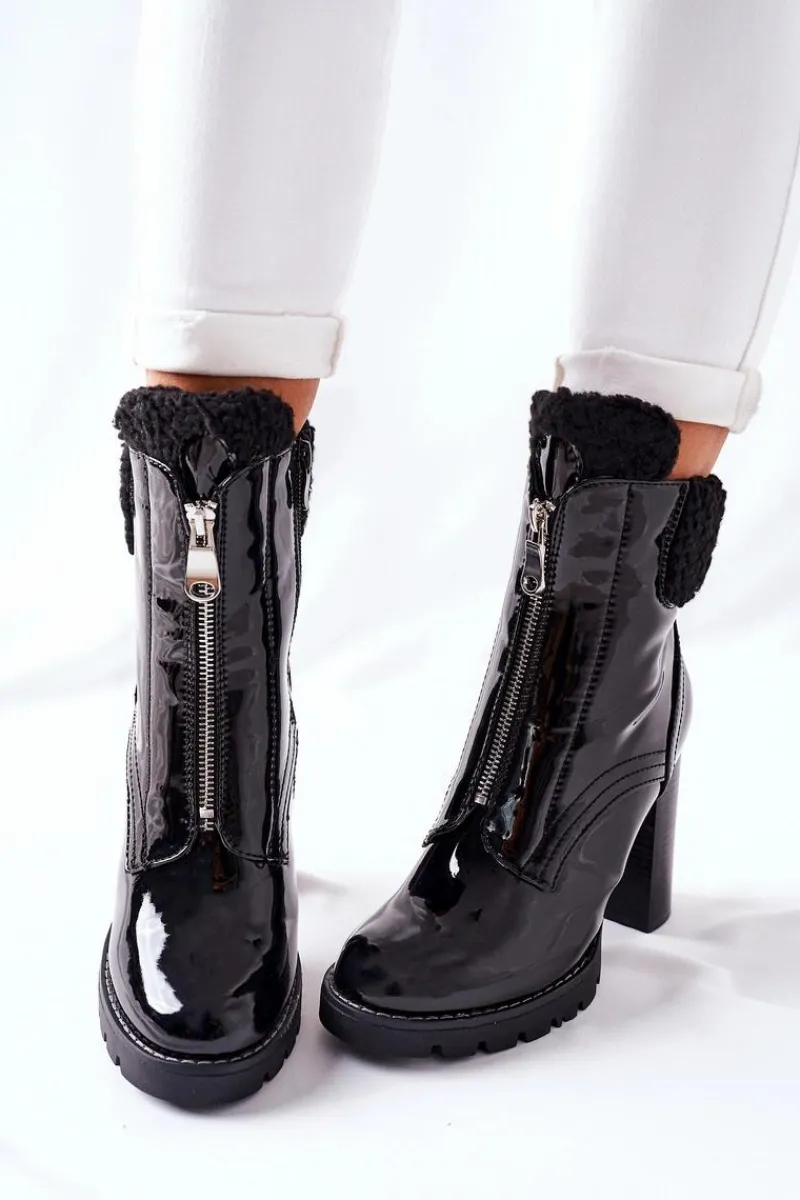Czarne lakierowane botki to hit tego sezonu! Wnętrze butów wyścielone miłym w dotyku kocem obuwniczym! Suwak na boku ułatwi zakładanie! Podczas wyboru rozmiaru prosimy kierować się tabelą rozmiarów.