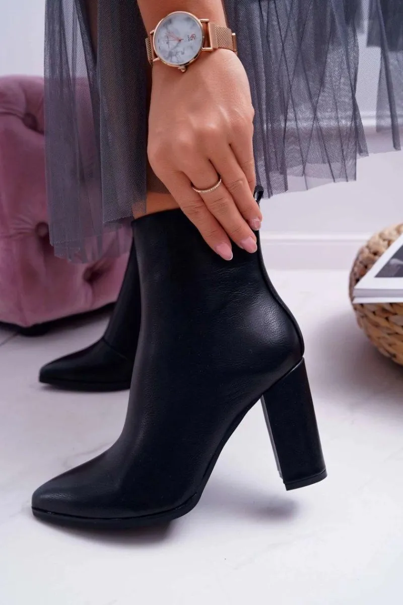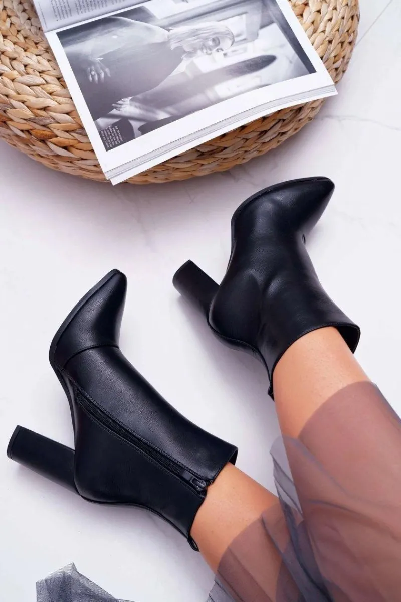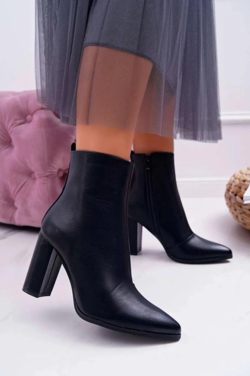 Spraw sobie odrobinę luksusu i wybierz nasze wspaniałe botki na słupku. Niepowtarzalny styl botków z noskiem w szpic wpisuje się w kanony mody na całym świecie. Ocieplane kocem obuwniczym wnętrze, zapewni nam komfort na każdym kroku nawet w chłodniejsze dni. Botki idealne sprawdzą się do jesiennych oraz letnich stylizacji. Podczas wyboru rozmiaru prosimy kierować się tabelą rozmiarów.
