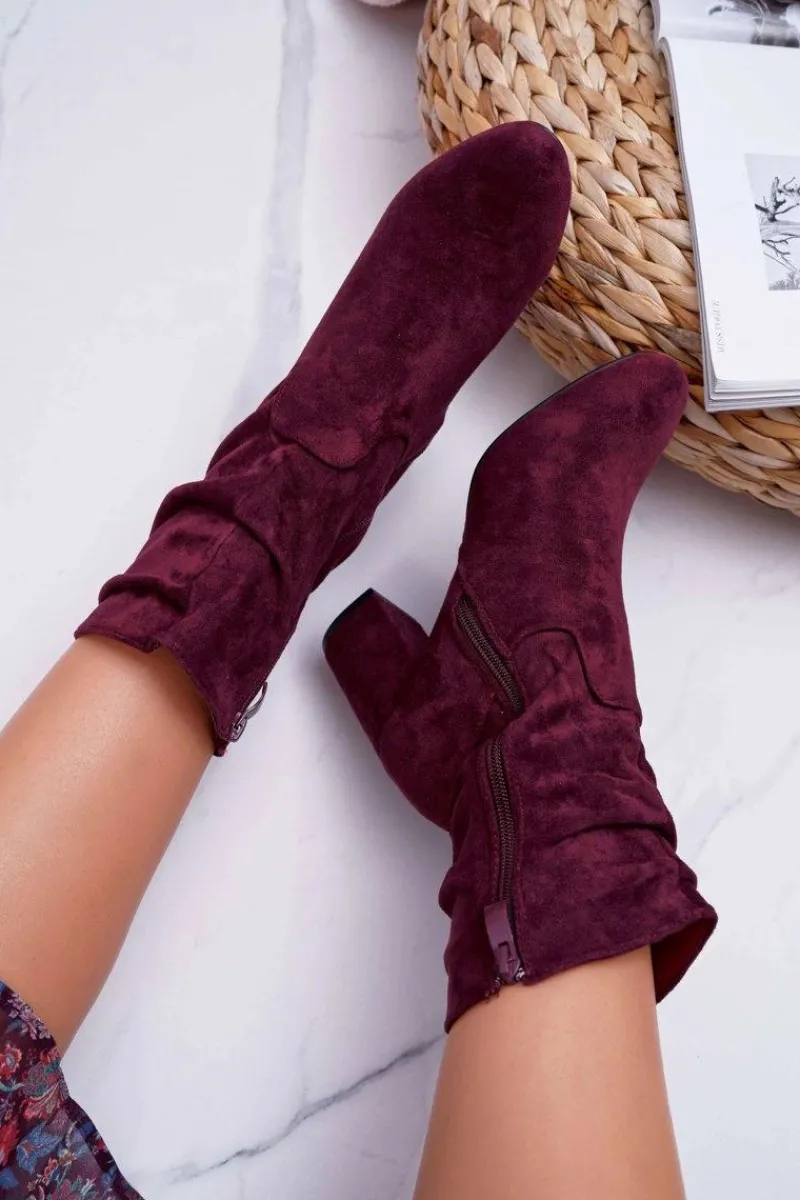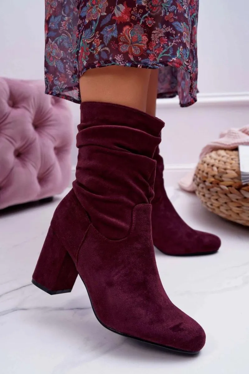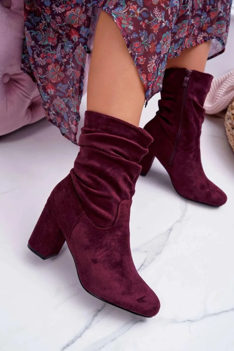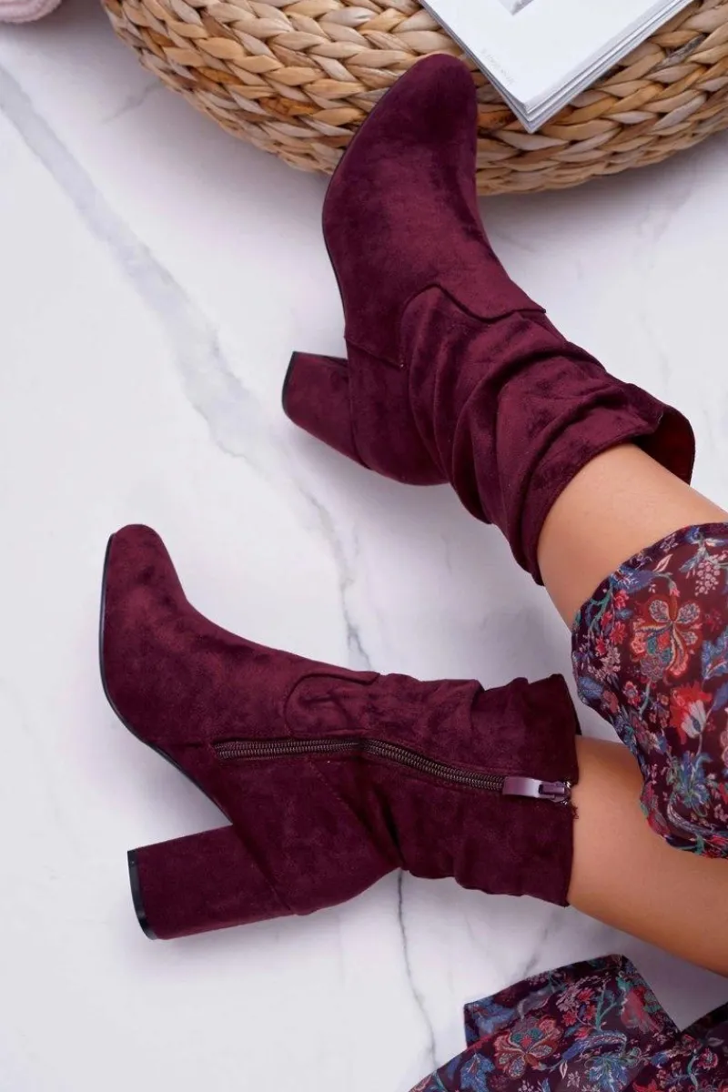 Botki Na Słupku|Botki Zimowe Damskie>Boto Botki Damskie Na Słupku Zamsz Bordowe Endless